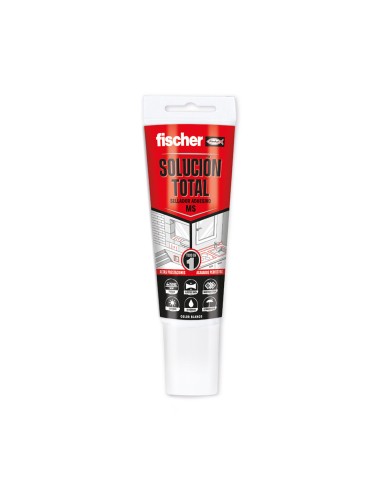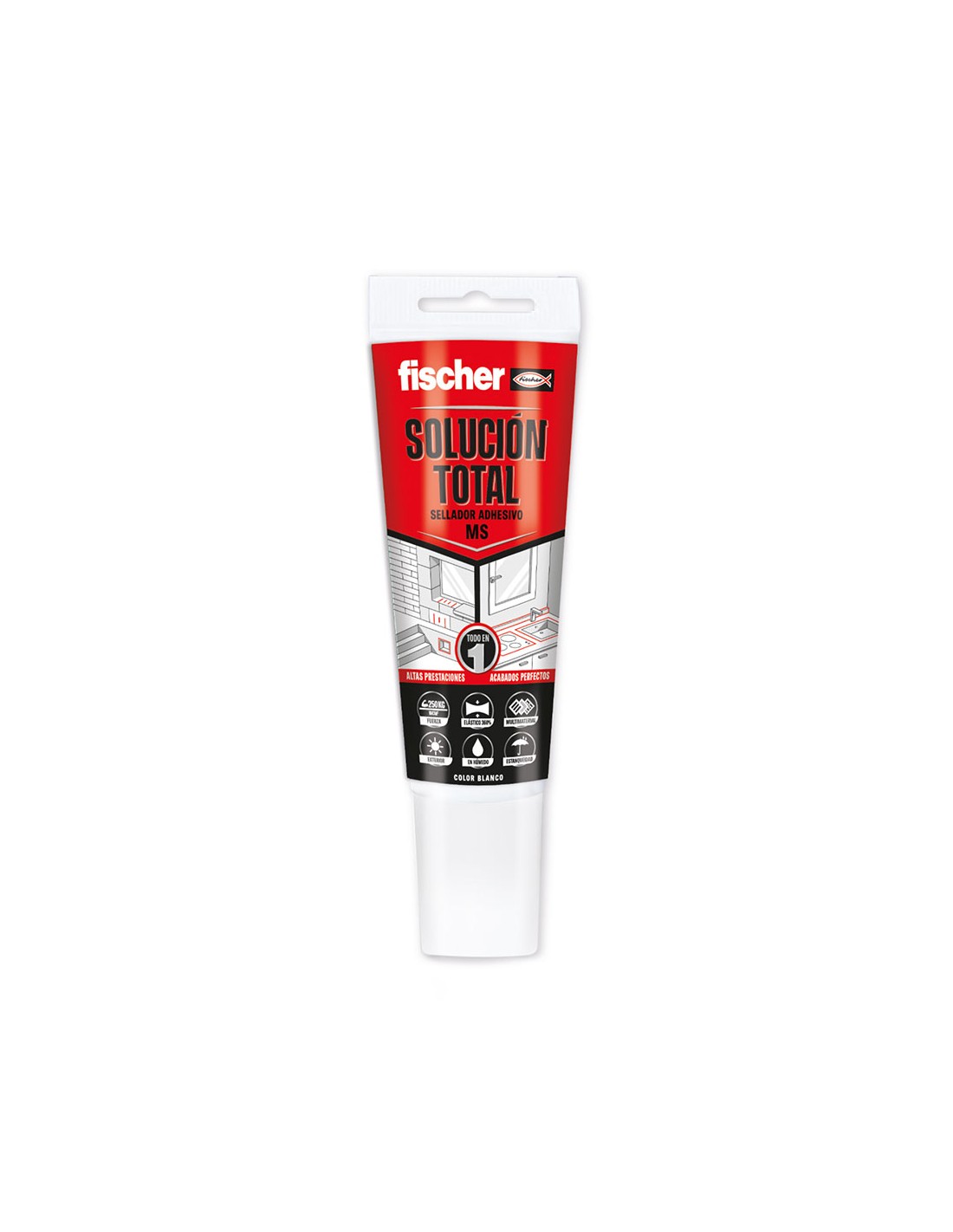 Ms total solución blanco 80ml 519030 fischer, adhesivo sellador, tiene una elasticidad del 700%, una fuerza de traccón de 100 kg/10cm, multimaterial para todo tipo de superficies, seca en húmedo, tanto para exterior como para interior, a la vez que pega estanqueiza.