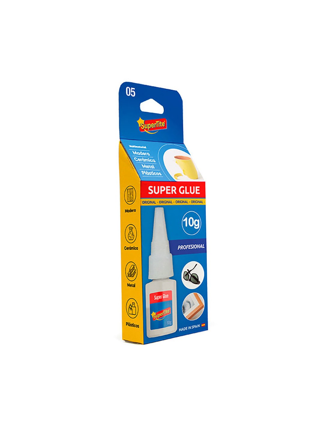 Super glue blister 10 g adhesivo desarrollado para: unión de gran diversidad de materiales, como metales, porcelana, mármol, plásticos, goma, vidrio, caucho, madera, etc. entre sí o combinados. empleo en bricolaje y en industria en general.