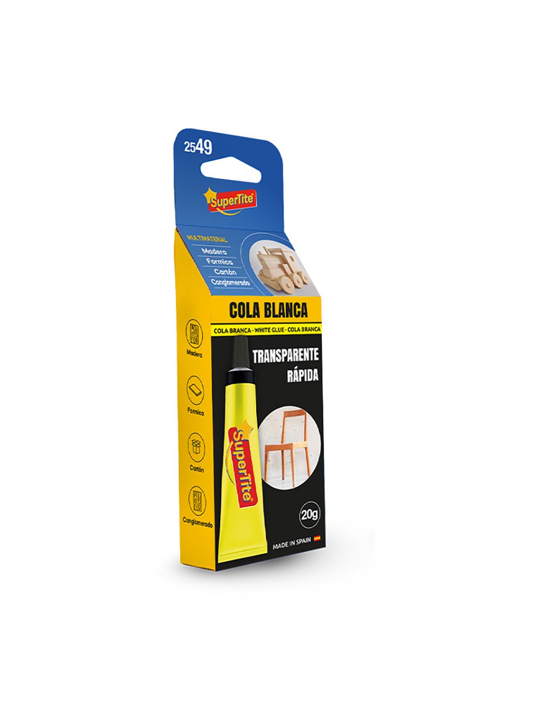 Cola blanca de gran resistencia para uso profesional, 20 g, secado rápido, cuando seca completamente, es transparente. para materiales de madera, cartón, formica y conglomerado