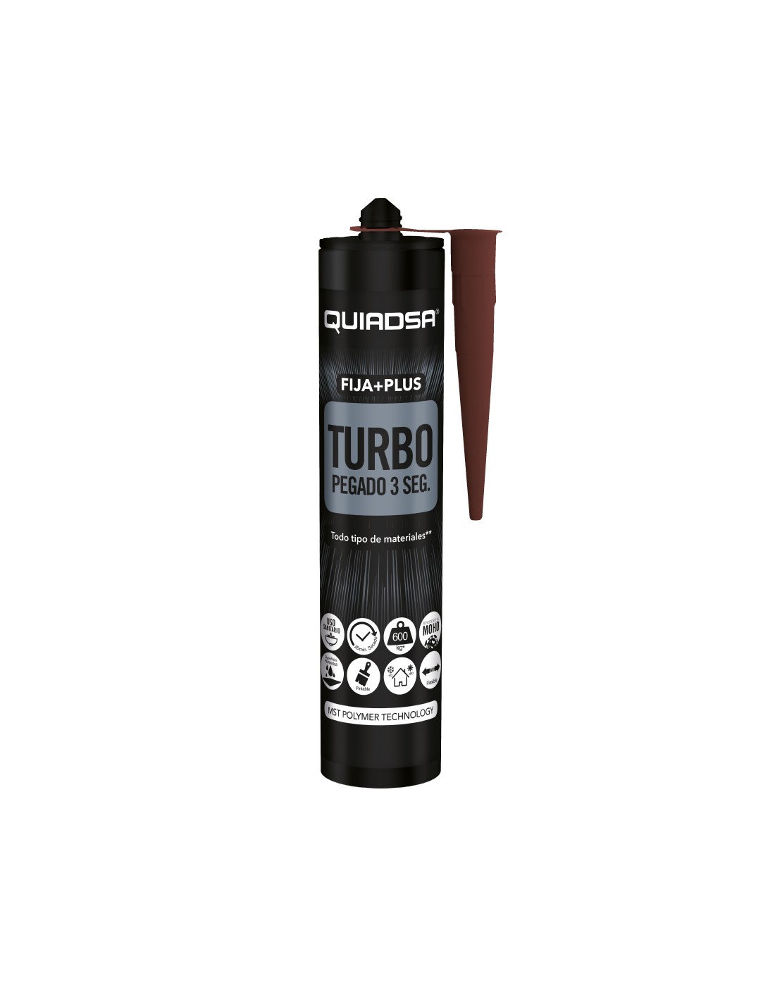 Cartucho de adhesivo elástico de polímero, sujección inmediata 3 segundos, secado en 20 minutos, resistente al moho, interior/exterior, no merma, no amarillea, pintable, superficies húmedas. para metales ferreos o no, paneles, tejas, espejos, azulejos, canalizaciones, etc temperatura aplicación entre 5° y 40°c resistencia a la temperatura -40° y 90°c. color marrón