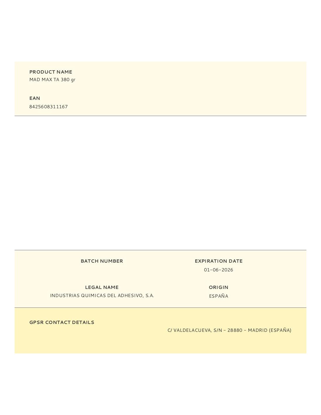 Adhesivo para madera, elevada resistencia final, mas fuerte que la madera, resistente al agua, se puede aplicar en vertical, interior/exterior, lijable y pintable, temperatura aplicación entre 5° y 40°c resistencia a la temperatura -40° y 90°c