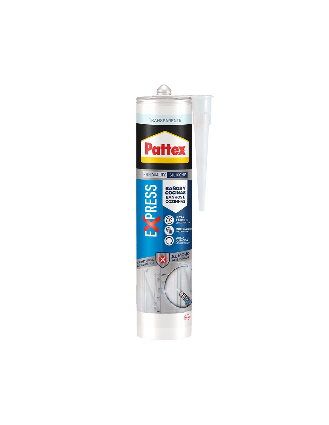 Silicona de alta calidad con alta resistencia al moho y secado ultra rápido (listo para su uso en solo 1 hora), ideal para el sellado de juntas en baños y cocinas. multimaterial, larga duración. color transparente, 280 ml