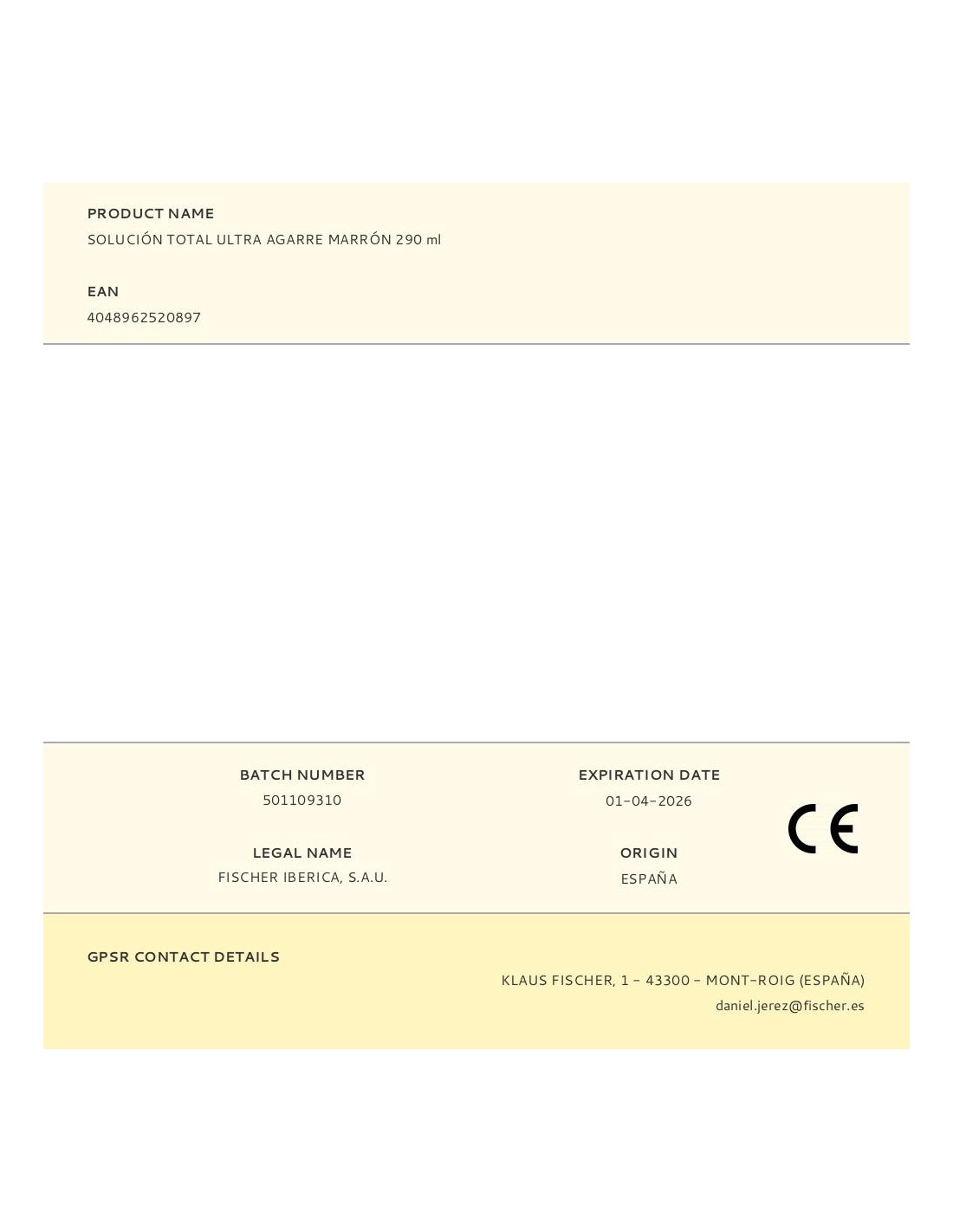 Solución total ultra agarre marrón 290 ml, adhesivo sellador, elasticidad permanente, agarre inmediato rectificable con una fuerza de tracción de 300 kg/m, multimaterial para todo tipo de superficies, seca en húmedo, resistente al agua y a la interperie. es pintable. tanto para exterior como para interior