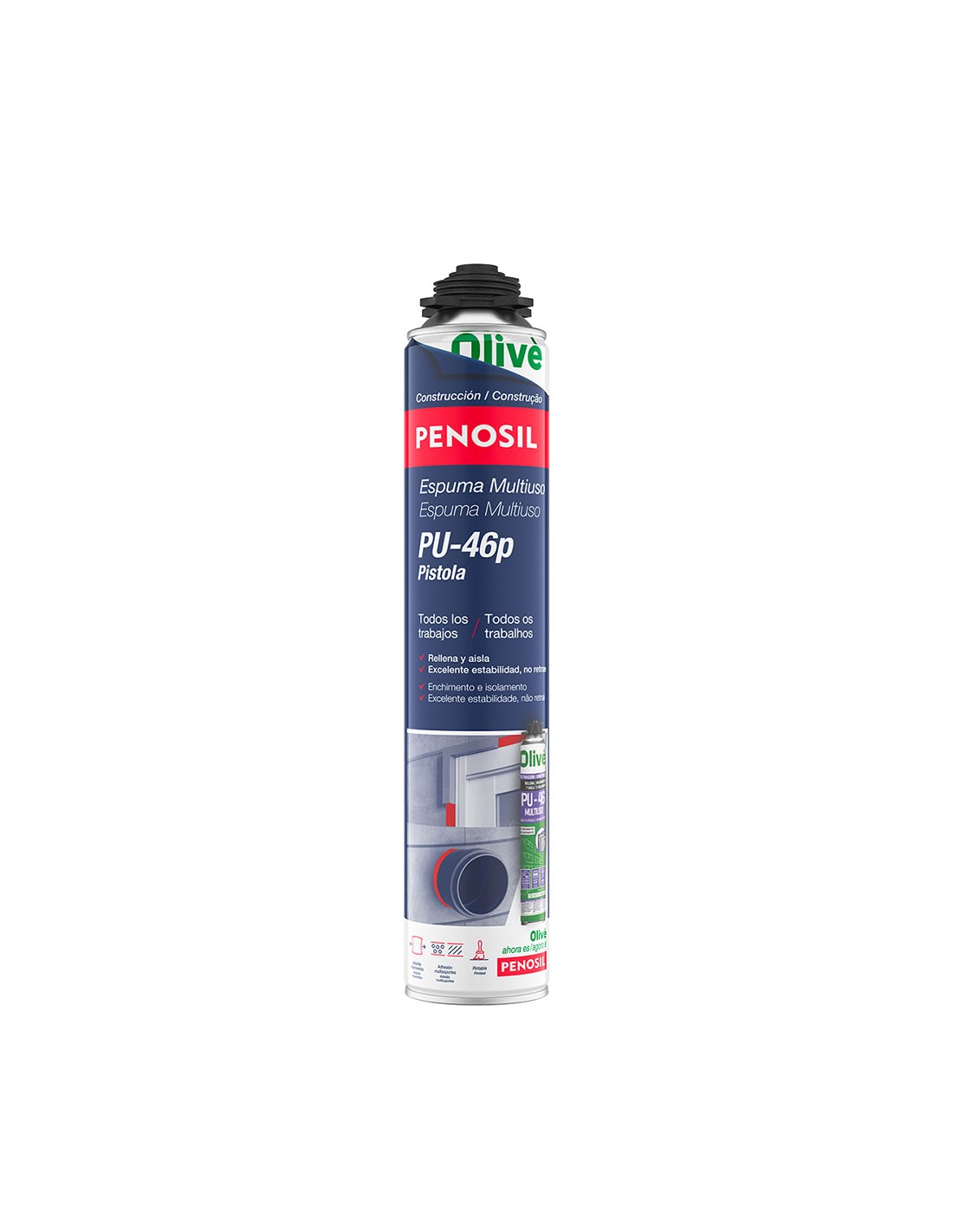 Espuma de poliuretano multiuso pu-46, monocomponente y autoexpandible de aplicación con pistola, 750 ml. absorbe movimientos, adhesión multimateriales, pintable, incluye guantes desechables