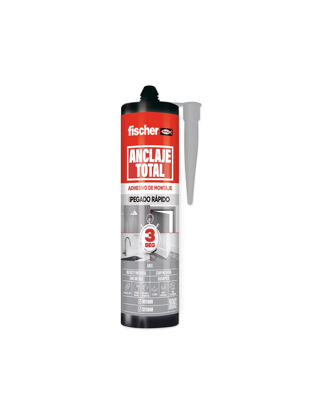 Anclaje total pegado rápido 3 segundos para interior/exterior, gris, 290 ml