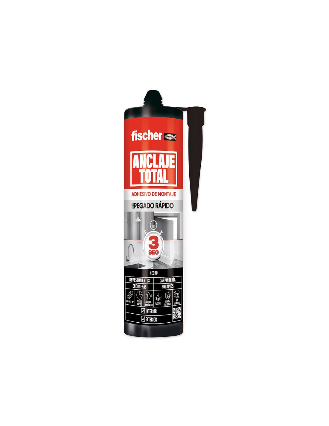 Anclaje total pegado rápido 3 segundos para interior/exterior, negro, 290 ml
