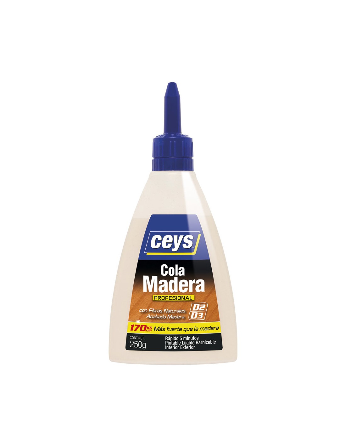 Cola madera profesional biberón 250 g, con fibras naturales que aporta una máxima resistencia final, 170 kg/cm, pegado rápido 5 min. acabado madera. para interior y exterior. esta cola es pintable, lijable, barnizable