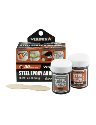 ➜ Visbella® Epoxy AB Glue Adhesive es un adhesivo de dos componentes que consiste en una resina epoxi y un endurecedor. Une y repara rápidamente metal, madera, plástico, cerámica, fibra de vidrio, PVC y más.
