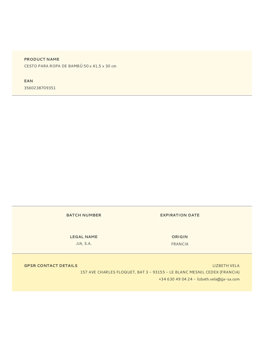 Cesta para ropa de bambú 50 x 41,5 x 30 cm