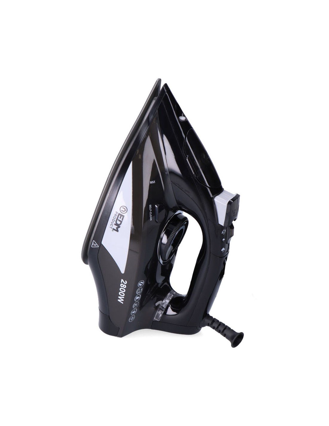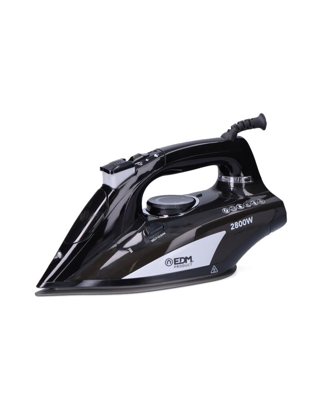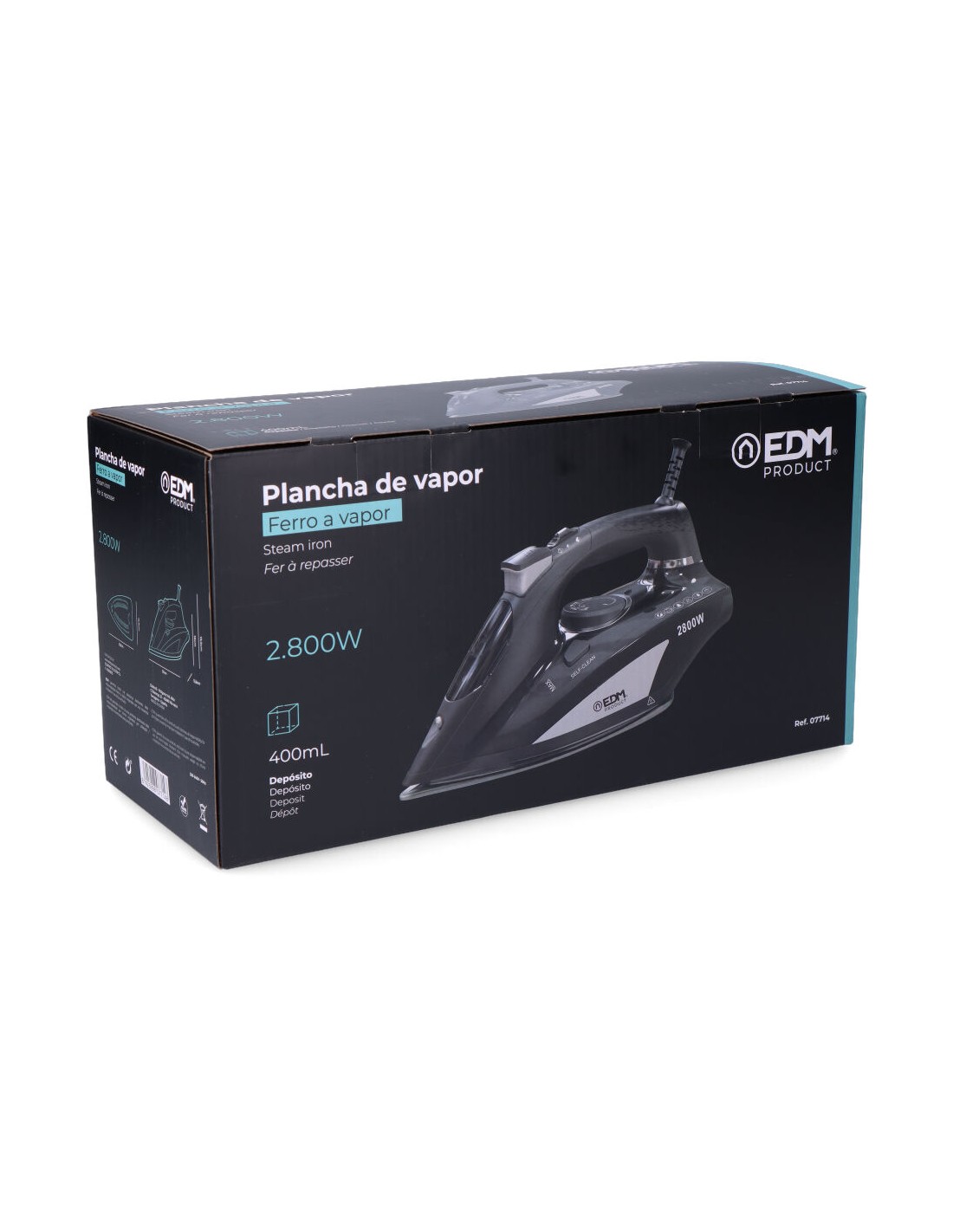 Plancha de vapor 2800 w 220 - 240 v modelo grande edm. plancha a vapor o en seco con chorro de vapor y spray de agua. potencia de vapor ajustable. base antiadherente de aleación de aluminio adc-12. depósito de 400 ml. medidas: 30 x 12,6 x 16 cm (ancho/fondo/alto) suela plancha 23,8 x 12,6 cm (ancho/fondo)