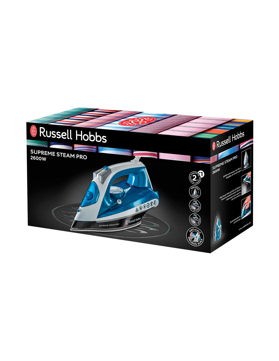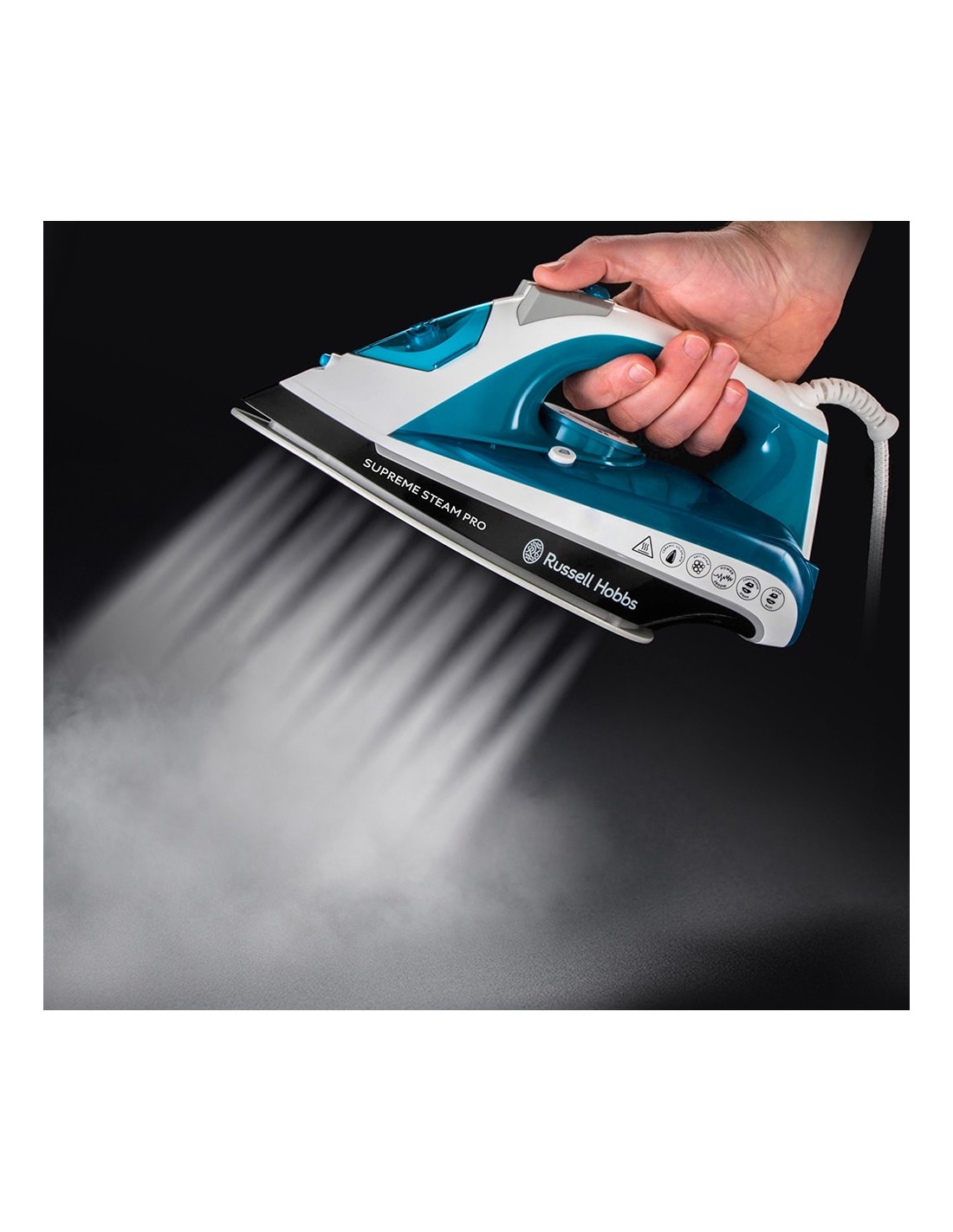 Plancha de vapor supreme steam pro azul. modelo: 23971-56. suela de cerámica. potencia. 2600 w. vapor continuo de 40 g. golpe de vapor de 145 g. función antigoteo, antical, autolimpieza. cable de alimentación de 2 metros. planchado seco, con vapor, pulverización y chorro. función de vapor vertical. gran depósito de agua de 310 ml. vapor regulable. asa y selector con textura. dimensiones: 28 x 11,5 x 15 cm