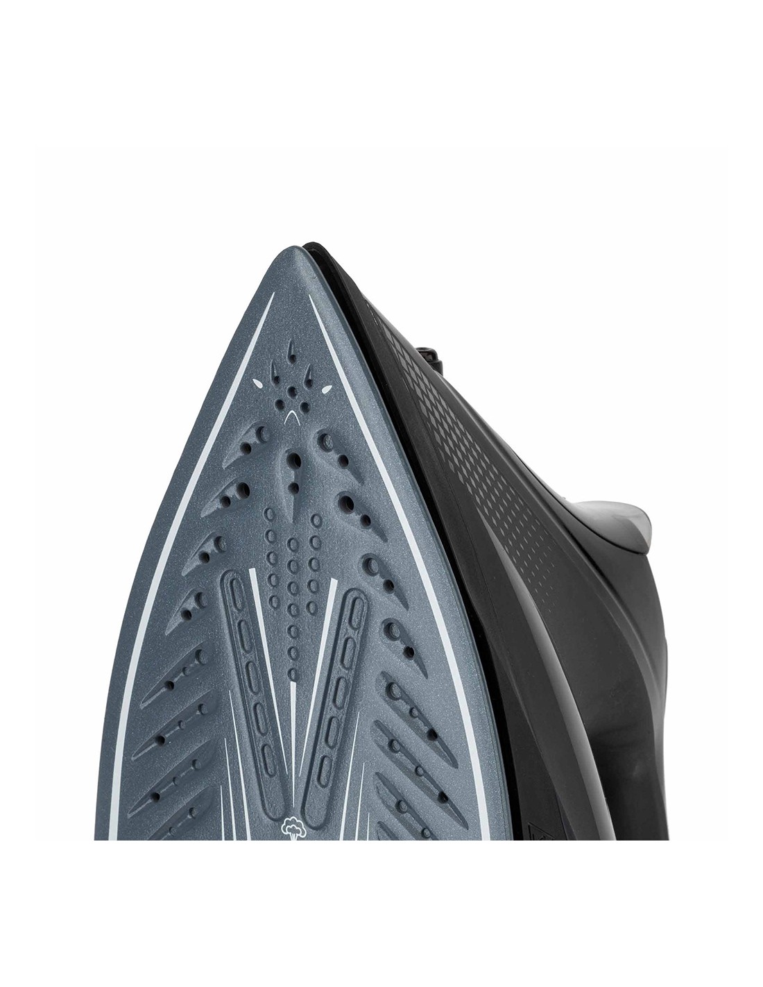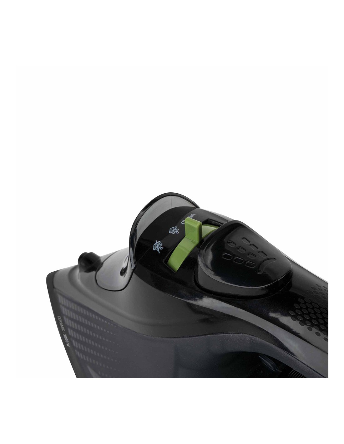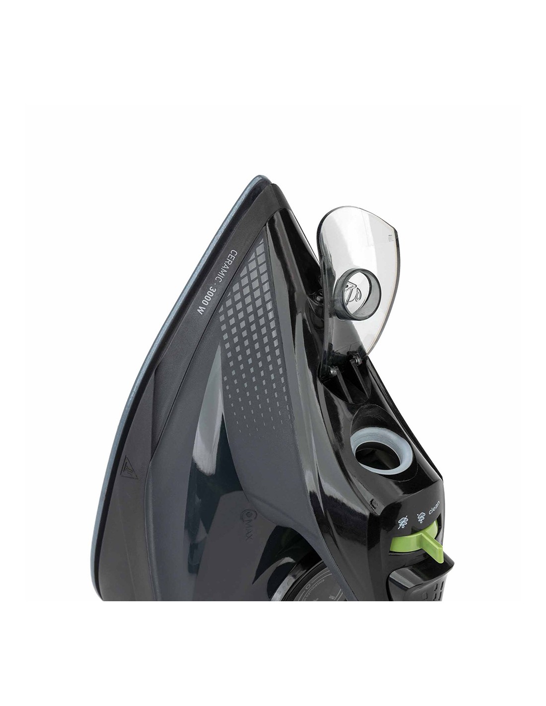 Plancha de vapor cerámica con potencia máx. 3000 w, suela de cerámica, vapor vertical y regulable. sistema antigoteo, autolimpiable y antical permanente. golpe de vapor 220 g/min. vapor nominal 20 - 25 g/min. mandos independientes: vapor extra / spray. termostato regulable. piloto luminoso. depósito de agua de 450 ml con tapa de seguridad. cordón pivotante 360°. voltaje 230 v
