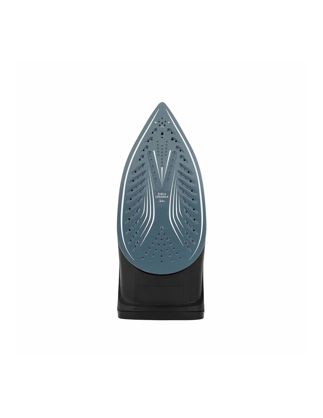 Plancha de vapor cerámica con potencia máx. 2400 w, suela de cerámica y vapor vertical sistema antigoteo, autolimpiable y antical permanente. golpe de vapor 160 g/min. vapor nominal: 20 - 30 g/min. termostato regulable piloto luminoso depósito de agua de 350 ml con tapa de seguridad cordón pivotante 360, voltaje 230 v