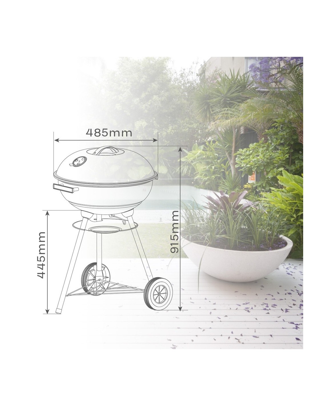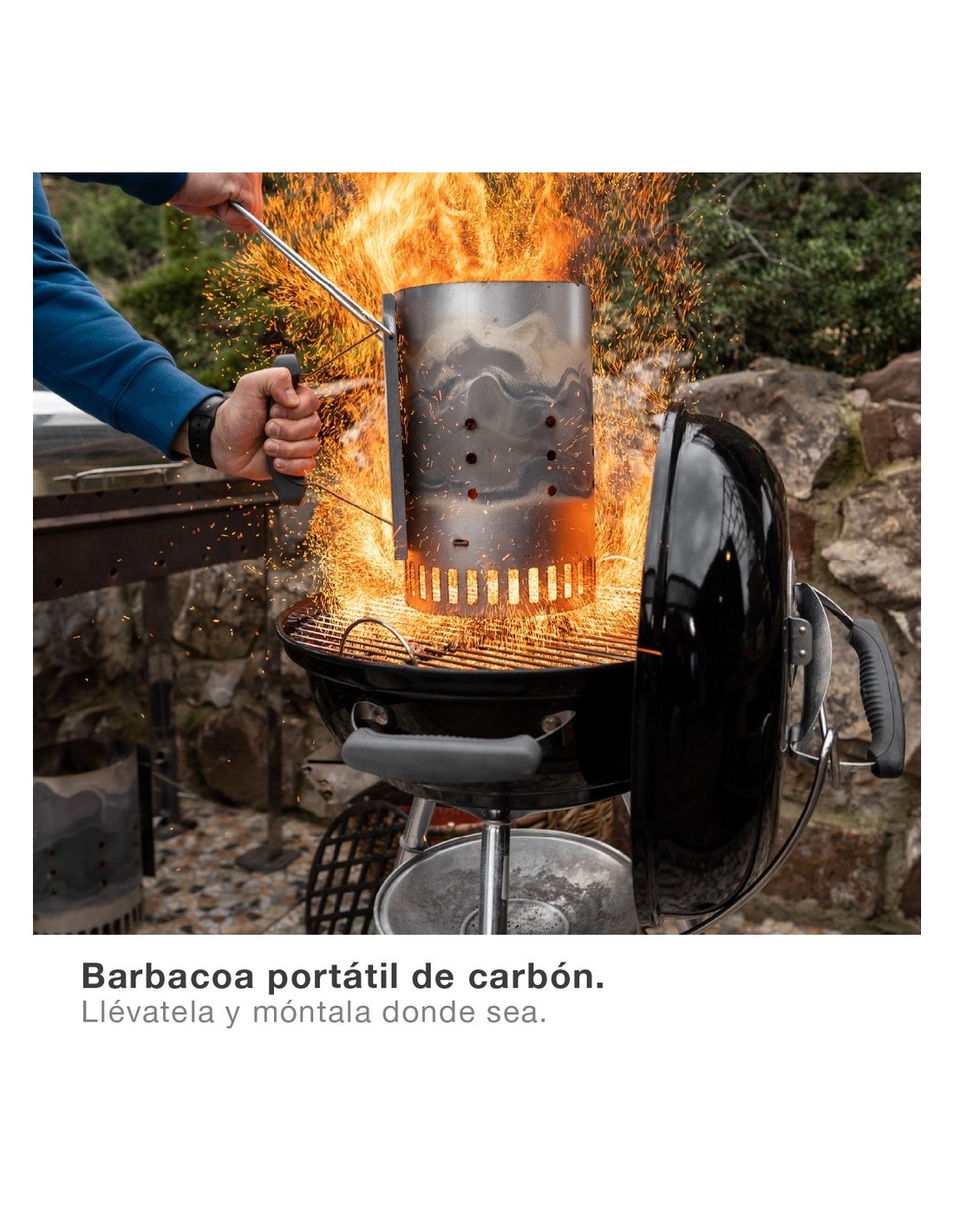 ➜Medidas: Ø41,8x71,5 cm➜ Parrilla doble a diferente altura➜ Brocheta de metal➜ Soporte tipo trípode 2 ruedas➜ Fácil montaje y mantenimiento➜ Acabado: Negro