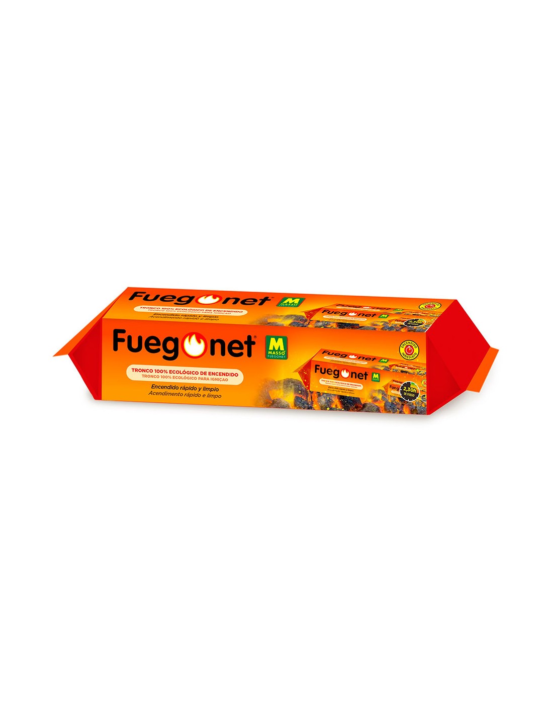 Tronco 100% ecologico - (con aceite vegetal, sin keroseno. encendido rapido, facil, limpio y ecologico) 20x7,5x7,5cm (ancho/fondo/alto) - fuegonet - masso