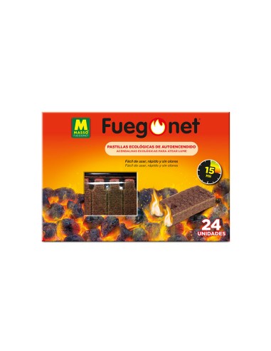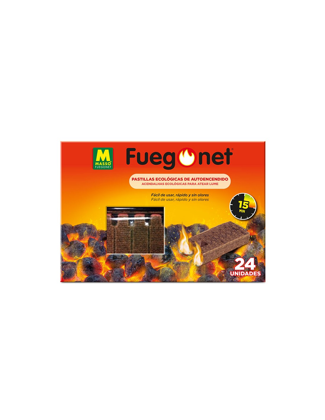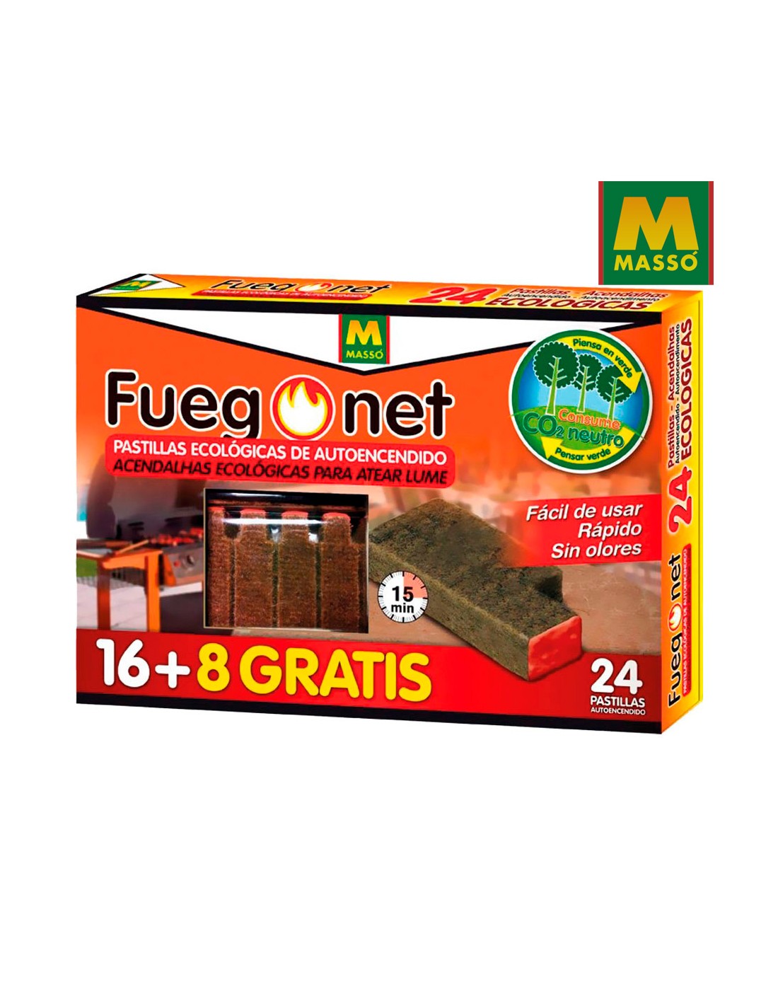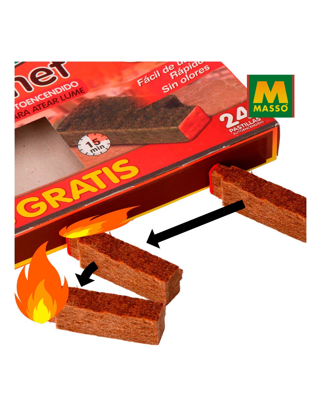 Pastillas de autoencendido - ecologicas - envase 16+8 unid. - (larga duracion de encendido y gran poder calorifico - compuestas de madera vegetal y aceites vegetales) - fuegonet - masso