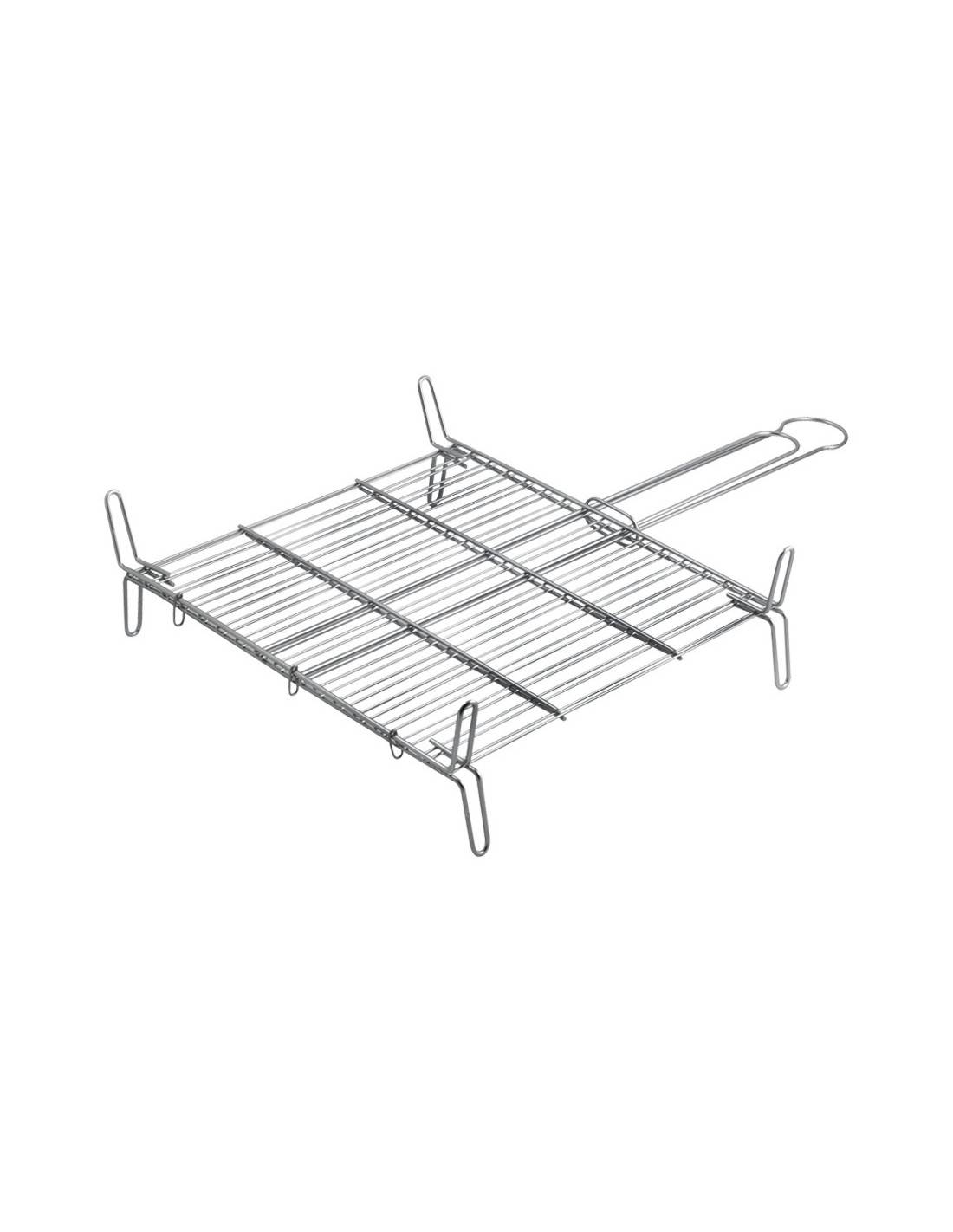 Parrilla doble 30x30cm con acabado cincado gourmet kitchen. el producto cumple con la normativa ce1935/2004 siendo apta para el contaco con alimentos.