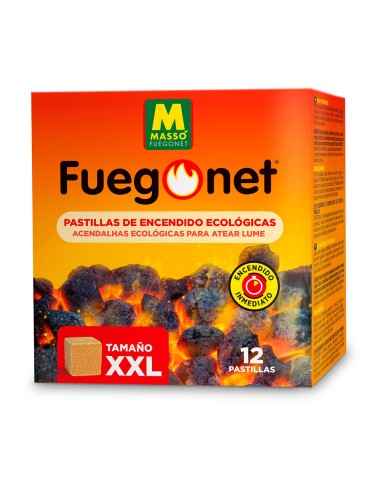 12 unidades pastillas ecológicas xxl fuegonet massó. compuestas de madera vegetal y aceites vegetales.no producen humos. económicas,prácticas y fáciles de usar. queman durante más de 15 minutos. respeta el medio ambiente. larga duración de encendido y gran poder calorífico.