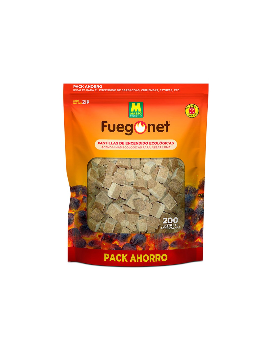 200 unid. pastillas ecológicas de encendido fuegonet massó. compuestas de madera vegetal y aceites vegetales.no producen humos. económicas,prácticas y fáciles de usar. queman durante más de 8min. respeta el medio ambiente. larga duración de encendido y gran poder calorífico.