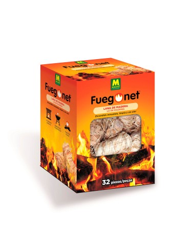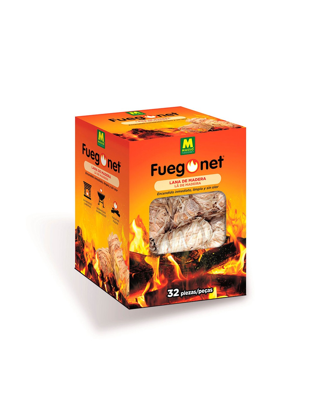 Lana enciende fuegos 32 unid. fuegonet massó. compuesta de lana de madera vegetal y aceites vegetales. no produce humos ni olores desagradables. se puede usar para encender fácilmente y con seguridad, leña, chimeneas y barbacoas.