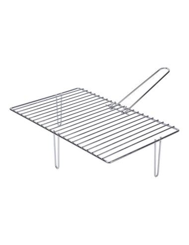 Parrilla cincada de 3 patas para chimeneas. medida: 46,6x28cm (ancho/fondo). con mango extraíble. patas de 120mm.