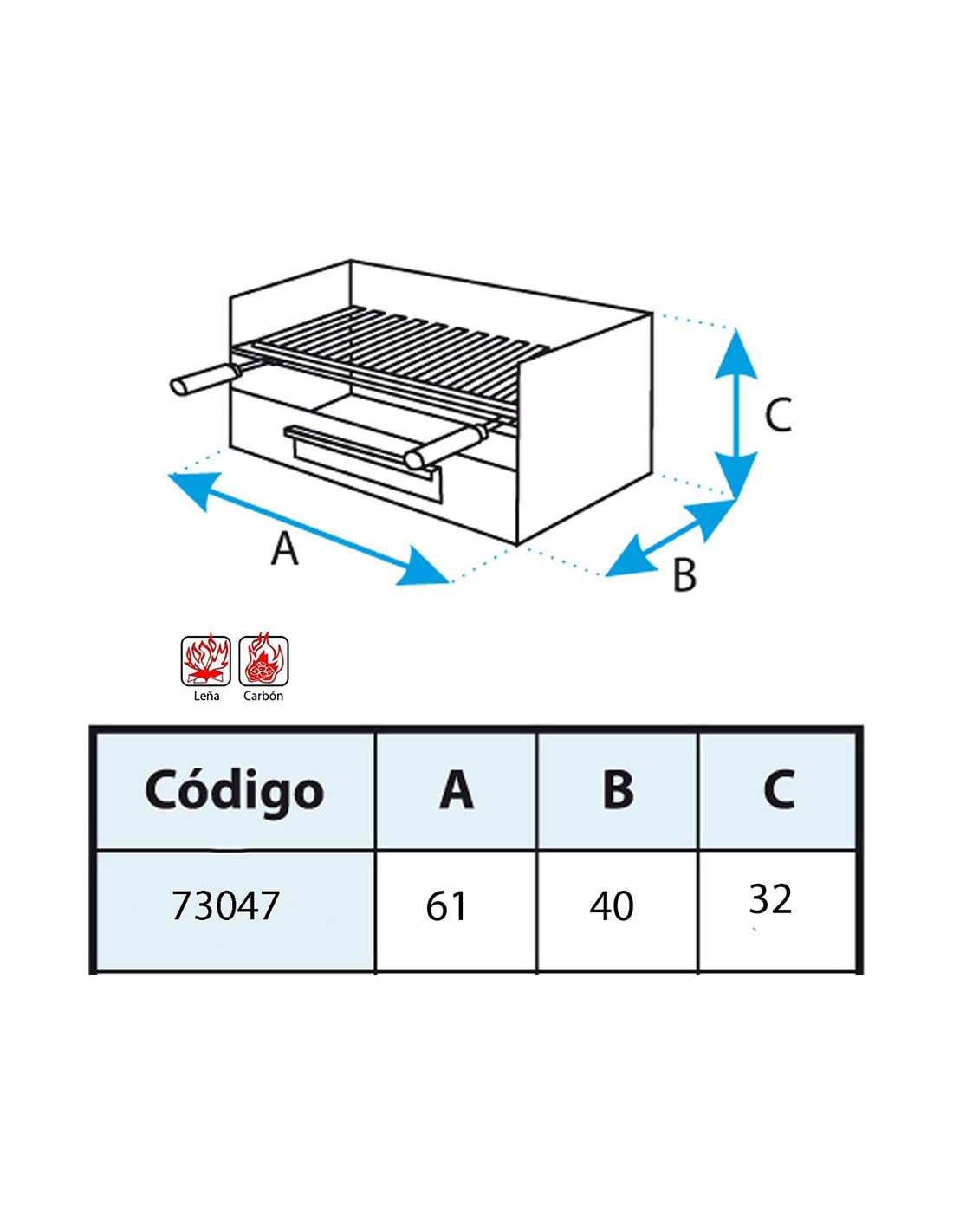 Cajón con parrilla inoxidable 61x40x32cm imex el zorro. apta para leña y carbón.