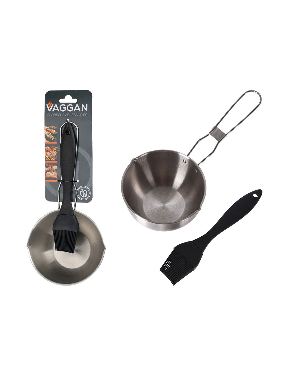 Salsera de acero inoxidable con pincel de silicona para embadurnado en barbacoas