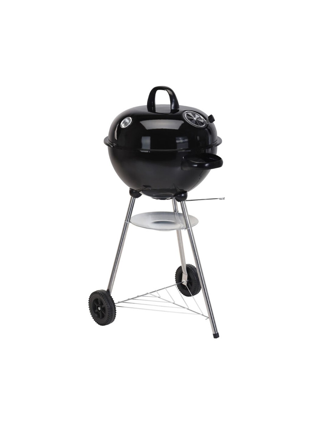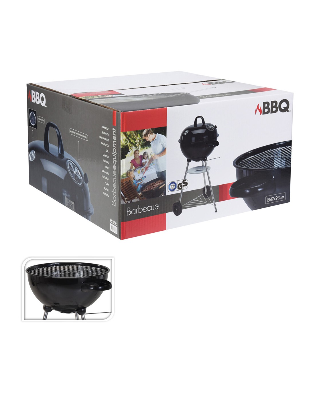 Barbacoa esférica acabado en esmalte negro, ø47 x 90 cm, espesor 0.7 mm, altura de cocción 75 cm, parrilla de cocción cromada ø435 mm, espesor del alambre 3.0/4.0 mm, patas tubo acero inoxidable ø22 mm, termómetro celsius en la tapa, abertura de ventilación ajustable con 2 ruedas para fácil movilidad