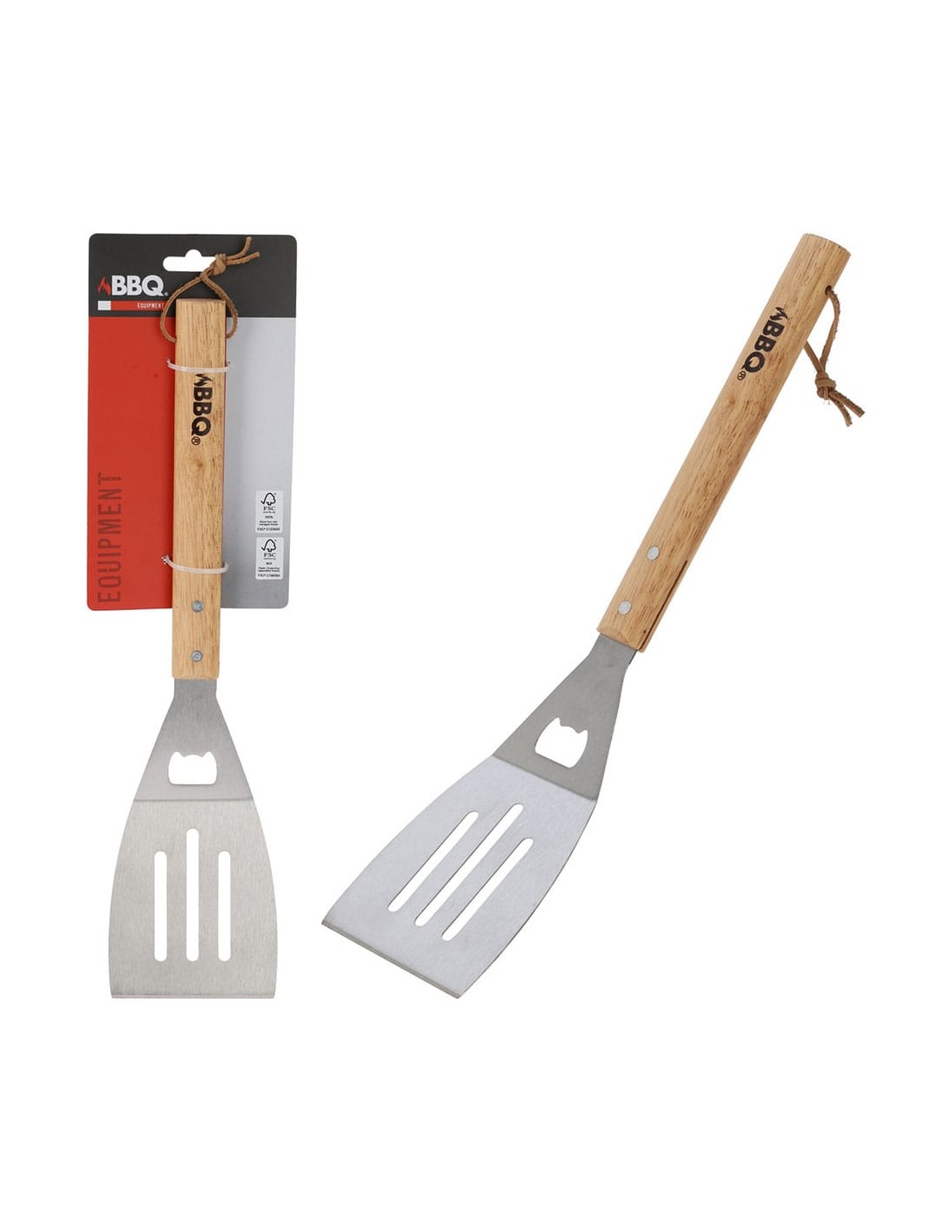 Espátula para barbacoa, material acero inoxidable con mango de madera natural. medida 41 cm