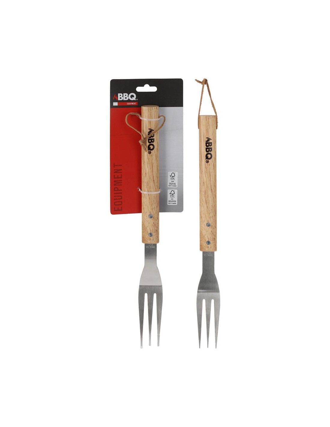Tenedor para barbacoa, material acero inoxidable con mango de madera. medida 38 cm