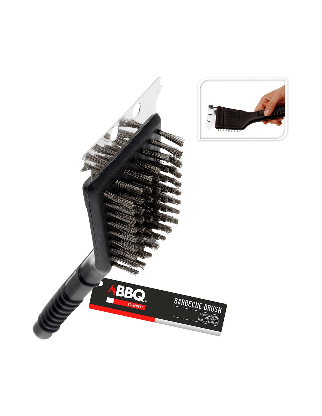 Cepillo con rasqueta para barbacoa, material acero inoxidable con mango de pp, 21 cm de longitud