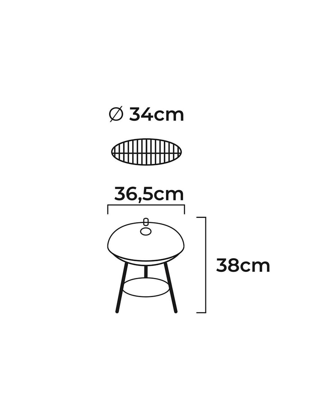 ➜Medidas: Ø41,8x71,5 cm➜ Parrilla doble a diferente altura➜ Brocheta de metal➜ Soporte tipo trípode 2 ruedas➜ Fácil montaje y mantenimiento➜ Acabado: Negro