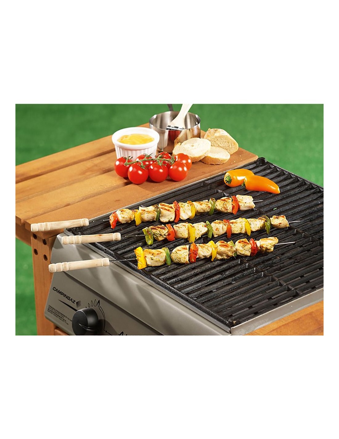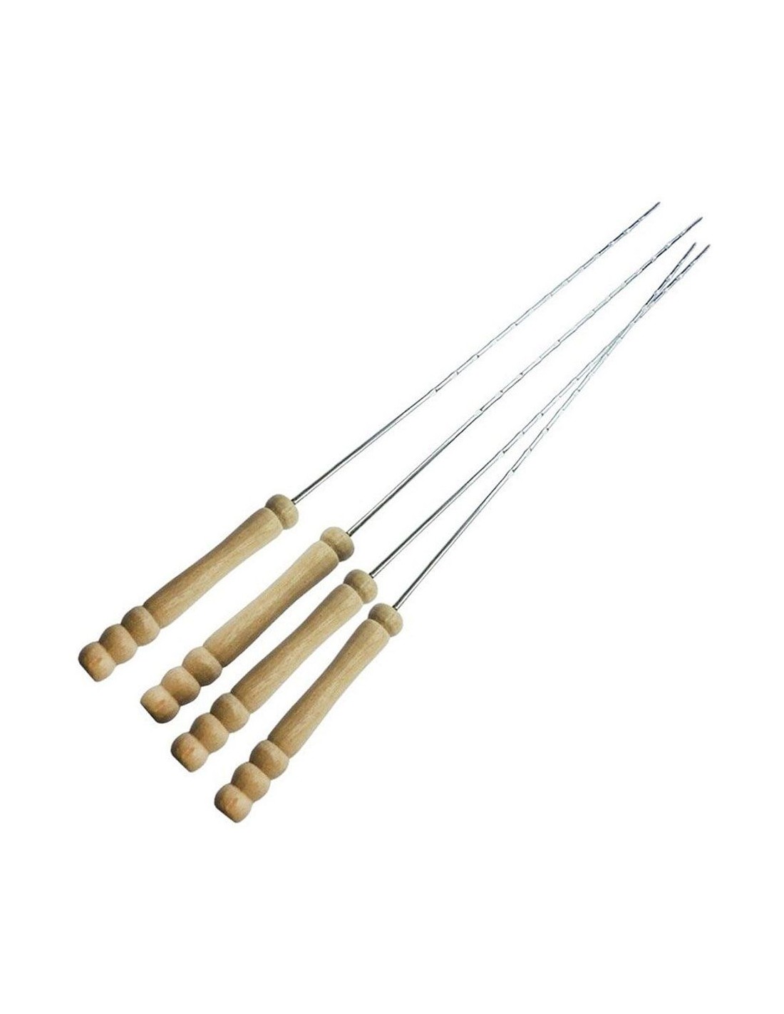 Brochetas de 38,5 cm de largo para barbacoa. material: acero inoxidable y mango de madera. apto para el contacto con alimentos, 4 uds