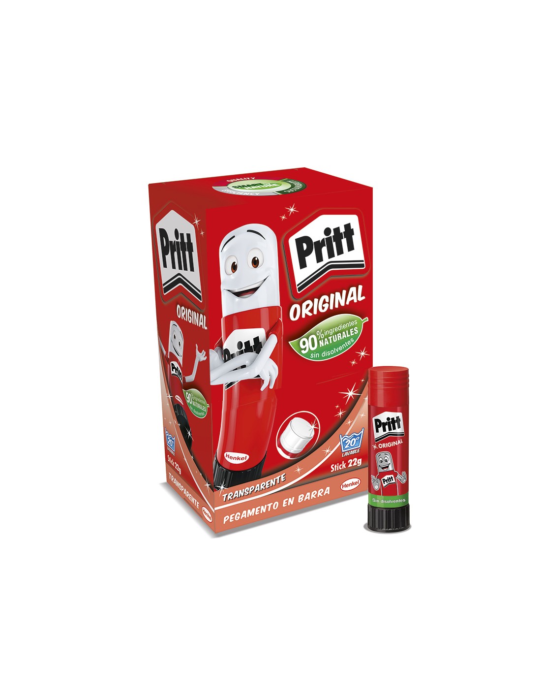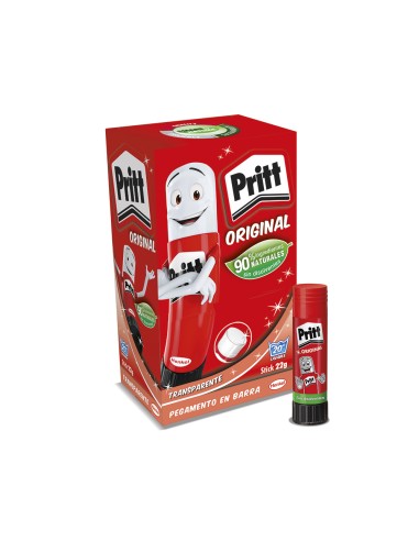 Pritt stick barra de pegamento transparente 22g pega de forma rapida facil y limpio. pega todo tipo de papel, carton, cartulina, etiquetas y fotos