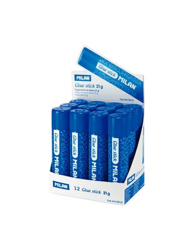 Pegamento en barra 21g milan precio por unidad. pegamento en barra mediano, de 21g. multiusos: pega fácilmente papel, cartulinas, fotos, tejido, fieltro, corcho, cuero y espuma. sin disolventes, ideal para uso escolar. medidas: ø2,5x10,5cm de largo.