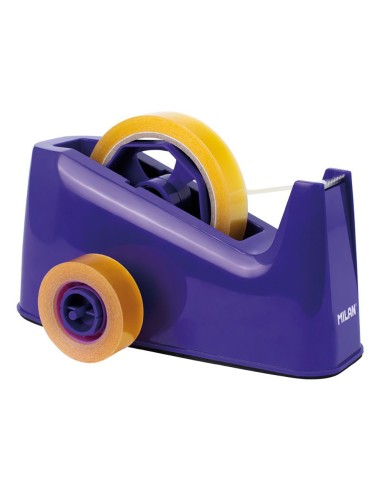 Portarollos azul con doble adaptador 33/66m milan. adaptadores para cintas de 33/66m (cinta no incluida) ideal para comercios. material: pvc