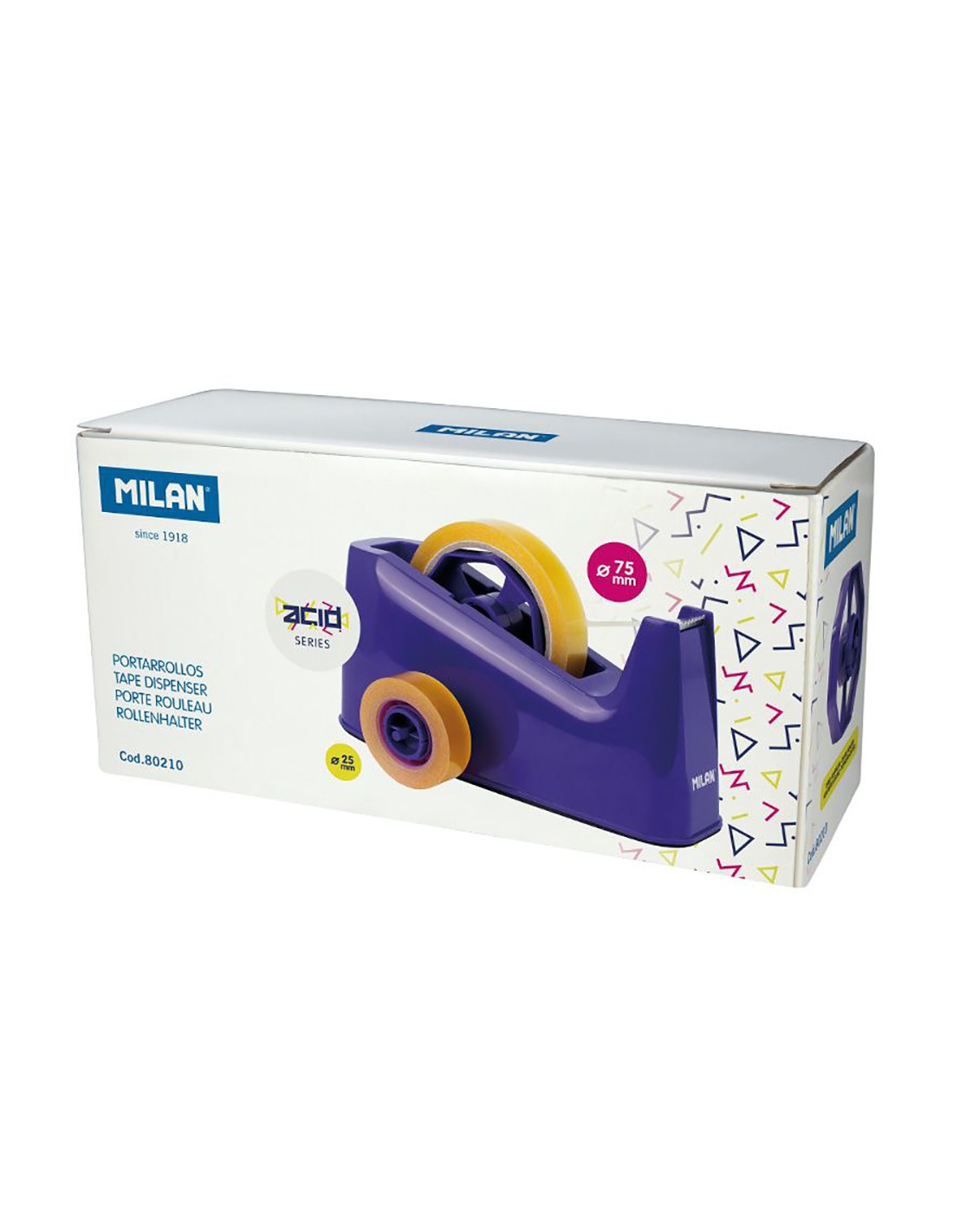 Dispensador de cinta adhesiva transparente 19 mm x 33 m colores surtidos