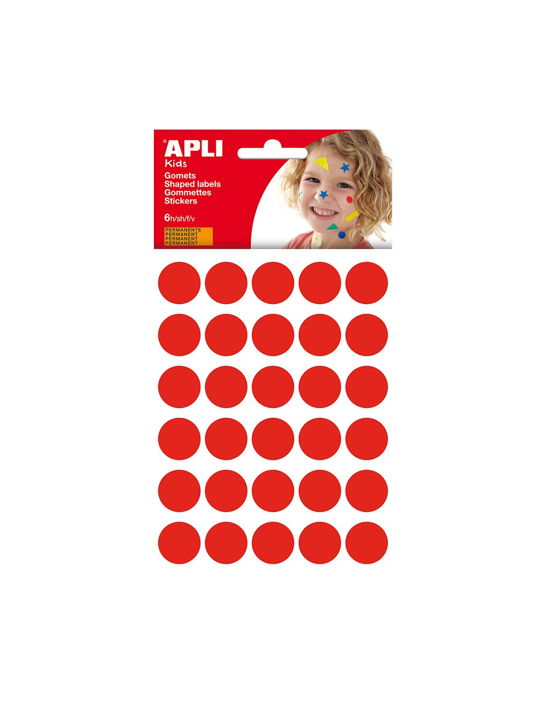 Blister 180 unid. gomets redondos color rojo medida ø20mm. presentados en 6 hojas con adhesivo permamente