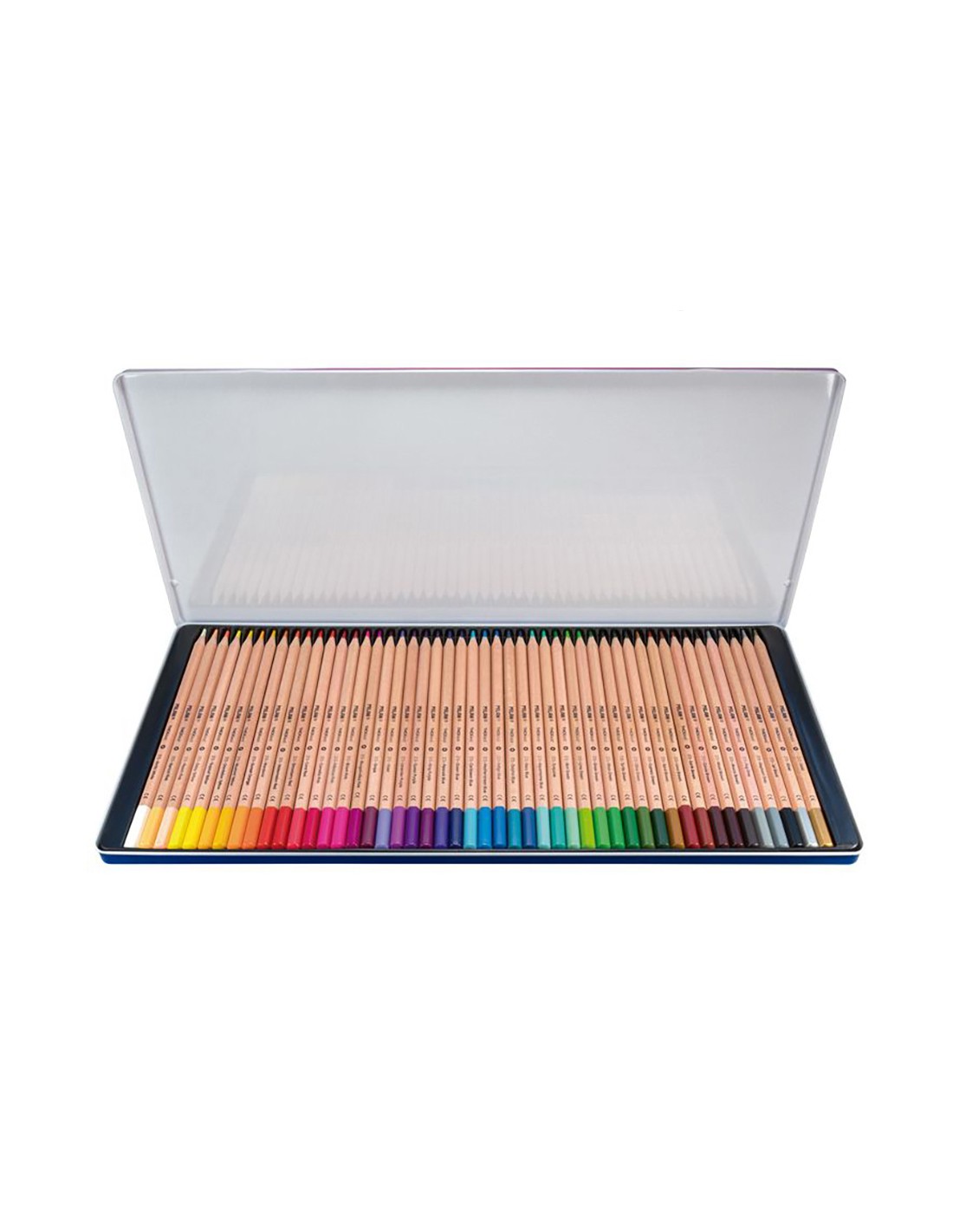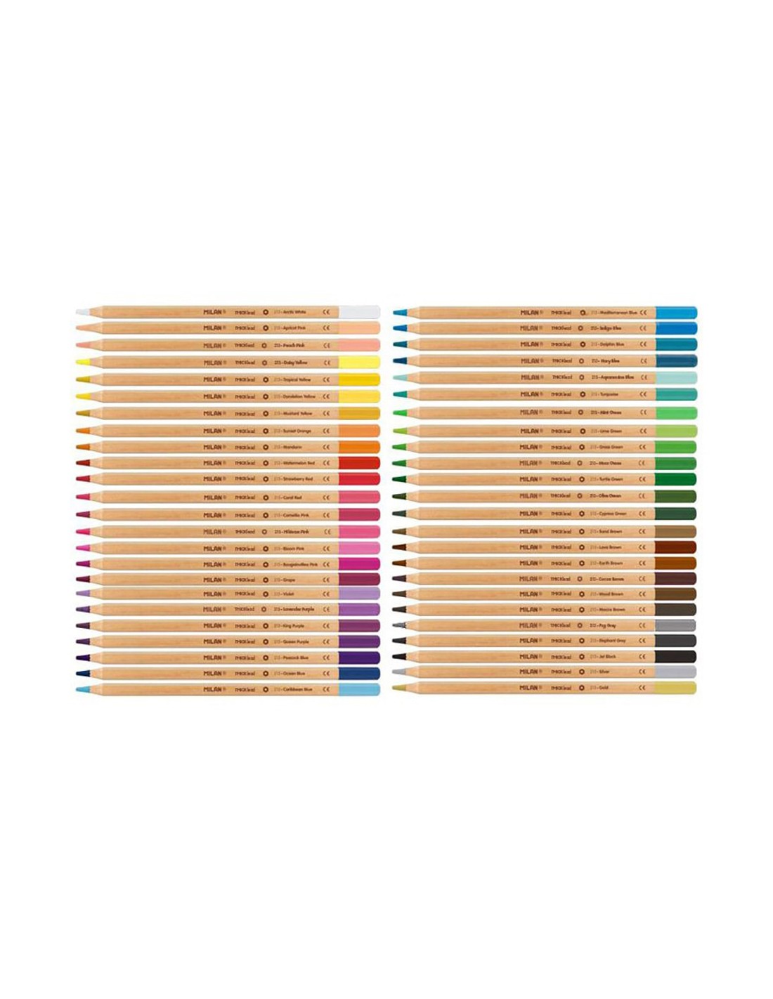 Caja metálica con 48 lápices de colores mina gruesa ø 3,5 mm hexagonales milan. contiene 2 colores metalizados: plata y oro. la mina ofrece un trazo uniforme y es resistente a la rotura, debido al sistema lps (lead protection system) que protege la mina gracias a su adhesión con la madera. madera procedente de plantaciones sostenibles. acabado de madera natural, cada color cuenta su propio nombre. caja metálica, incluye bandeja interior.
