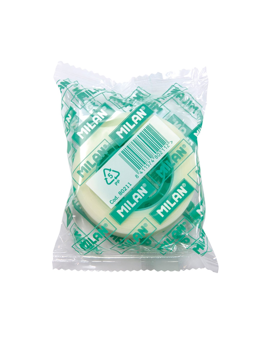 Cinta adhesiva invisible mate 19mm x 33m milan. en bolsita. cinta transparente mate, permite escribir encima.
