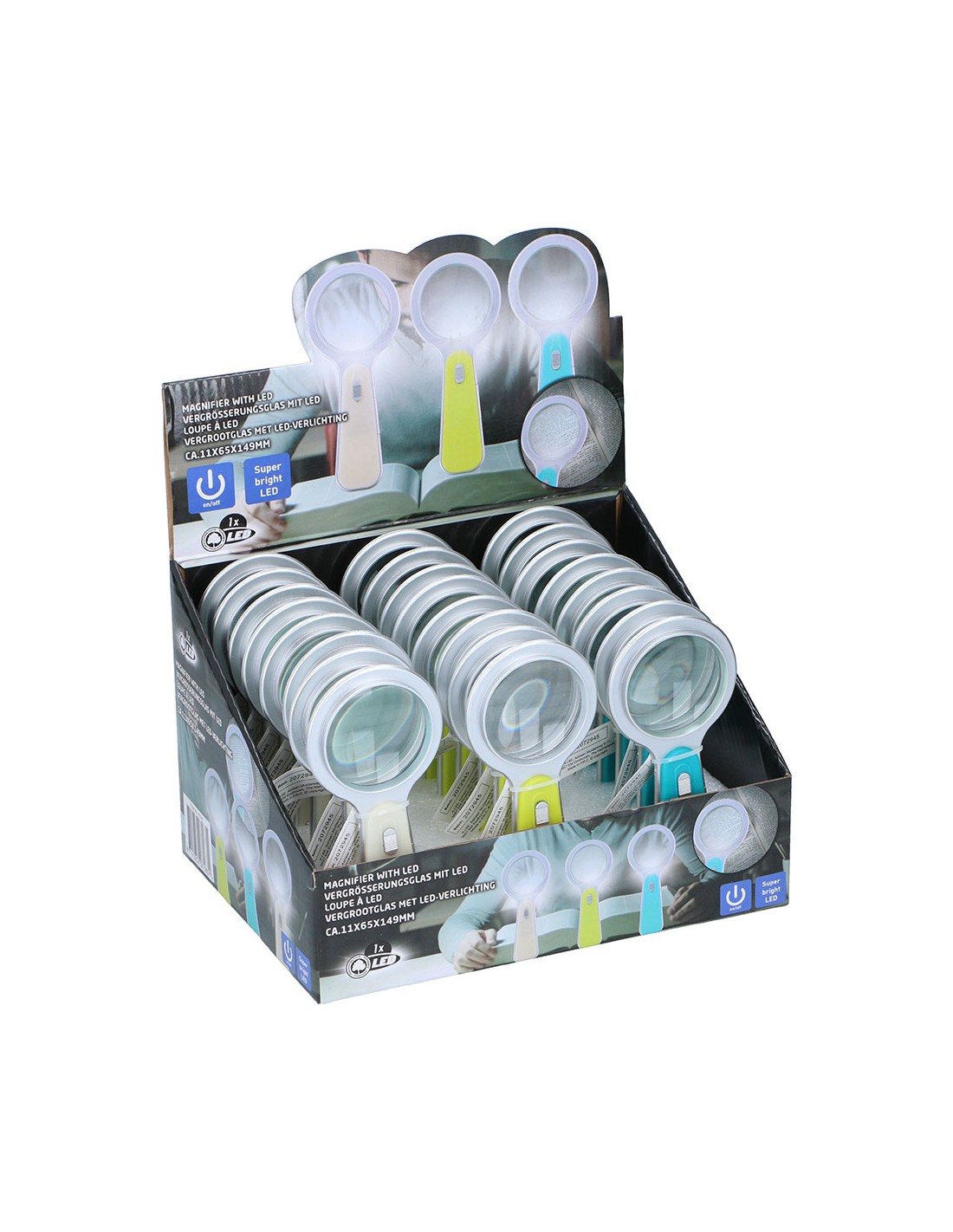 Lupa con luz led dimensiones: ø6,5x1x14,5cm (ancho/fondo/alto) funciona con 2xaa (no incluidas)