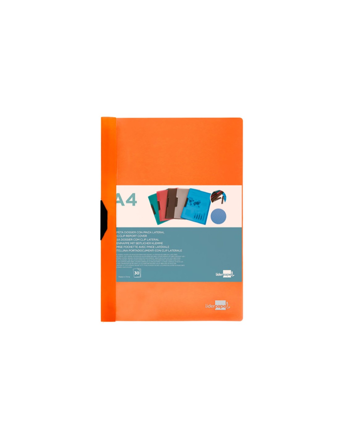 Carpeta dossier pinza lateral pp din a4 naranja fluor liderpapel. portada transparente de 180 micras y contraportada opaca. para 30 hojas. pinza deslizante
