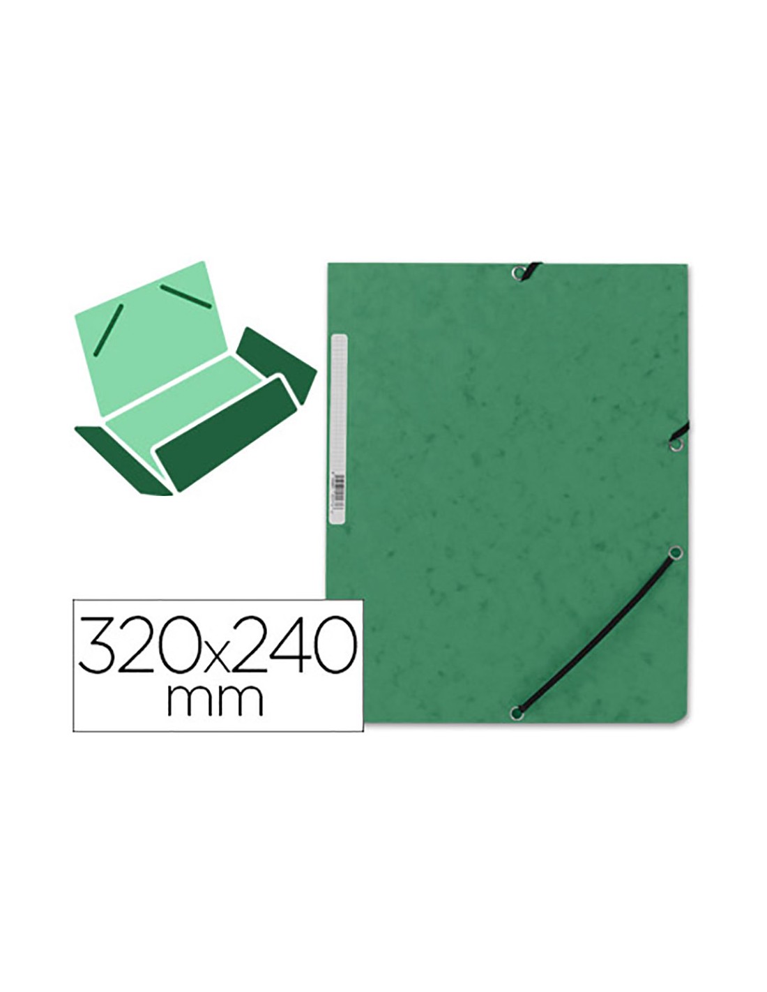 Carpeta con gomas kf02167 cartón verde con solapas din a4 q-connect. 320x240mm carpeta de goma en símil prespán de 325g/m. cierre con elástico y tres solapas. etiqueta adhesiva en el lomo de 15mm. formato din a4.