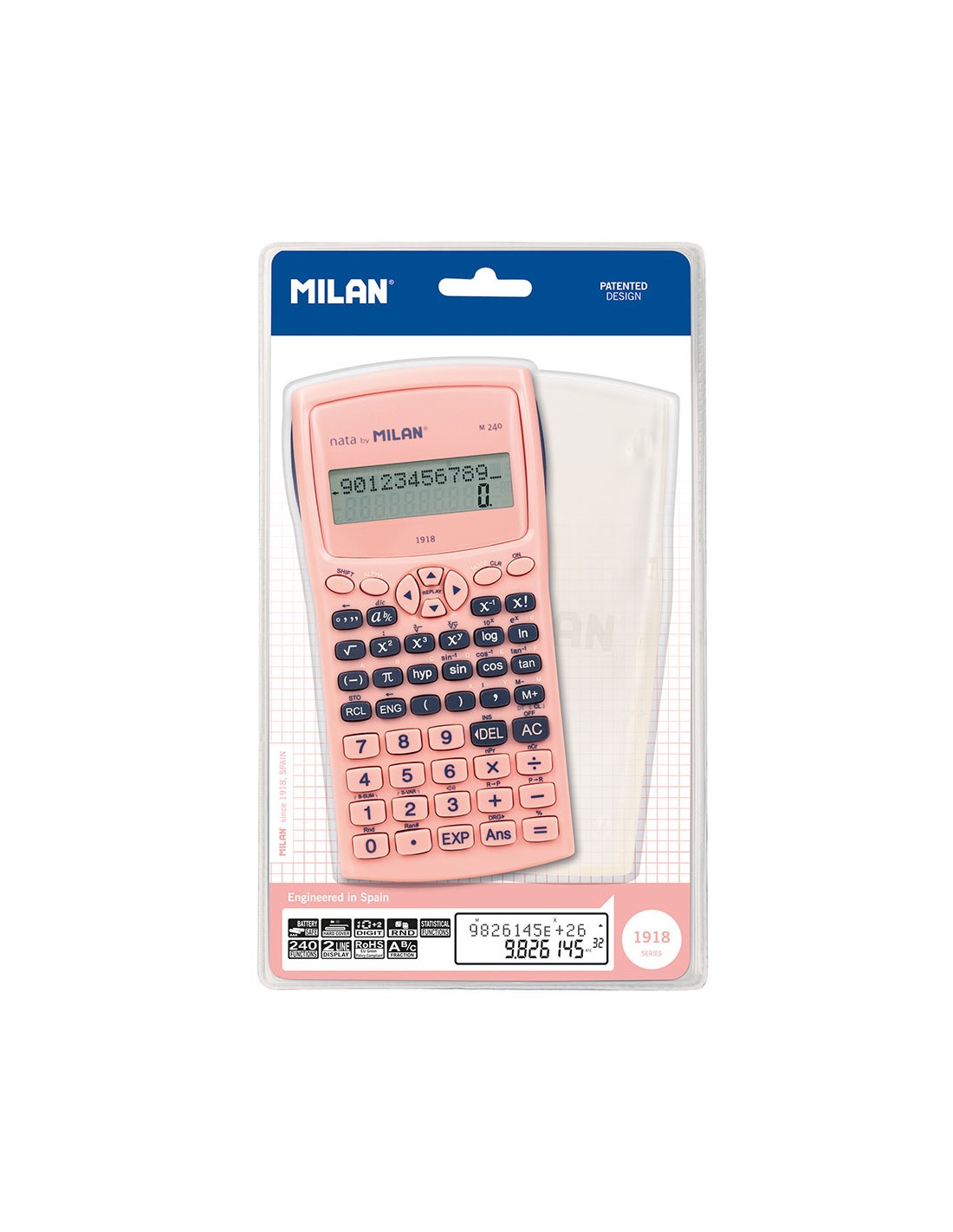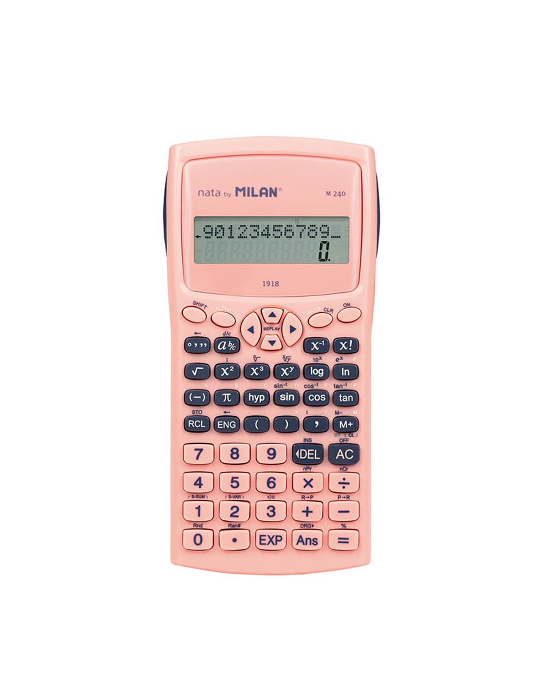 Calculadora científica m240 serie 1918. color rosa. con resistente carcasa protectora translúcida. pantalla de 2 líneas de lectura, de 10+2 dígitos. visualización de expresión y resultado de manera simultánea. 240 funciones integradas, incluyendo 124 científicas. funciones trigonométricas, funciones parabólicas e hiperbólicas y cálculo de hasta 6 tipos de regresión diferentes memoria para almacenamiento de medias. cálculo automático de quebrados, teclas de cursor para desplazarse por los menús, estructuración de paréntesis de hasta 24 niveles, memoria para almacenar las variables, cómputos en grado centesimal, sexagesimal y medida de arco, transformación mutua entre coordenadas rectangulares y coordenadas polares, conversión mutua entre sistemas decimal y sexagesimal, generador de valores aleatorios, porcentajes, fracciones, combinaciones, permutaciones, cálculos estadísticos, teclas grandes con disposición estructurada, funciones de notación sci/fix/eng, formación de sumas. alimentación: 2 pilas aaa (incluidas). medidas: 16,7x8,4x1,9cm.