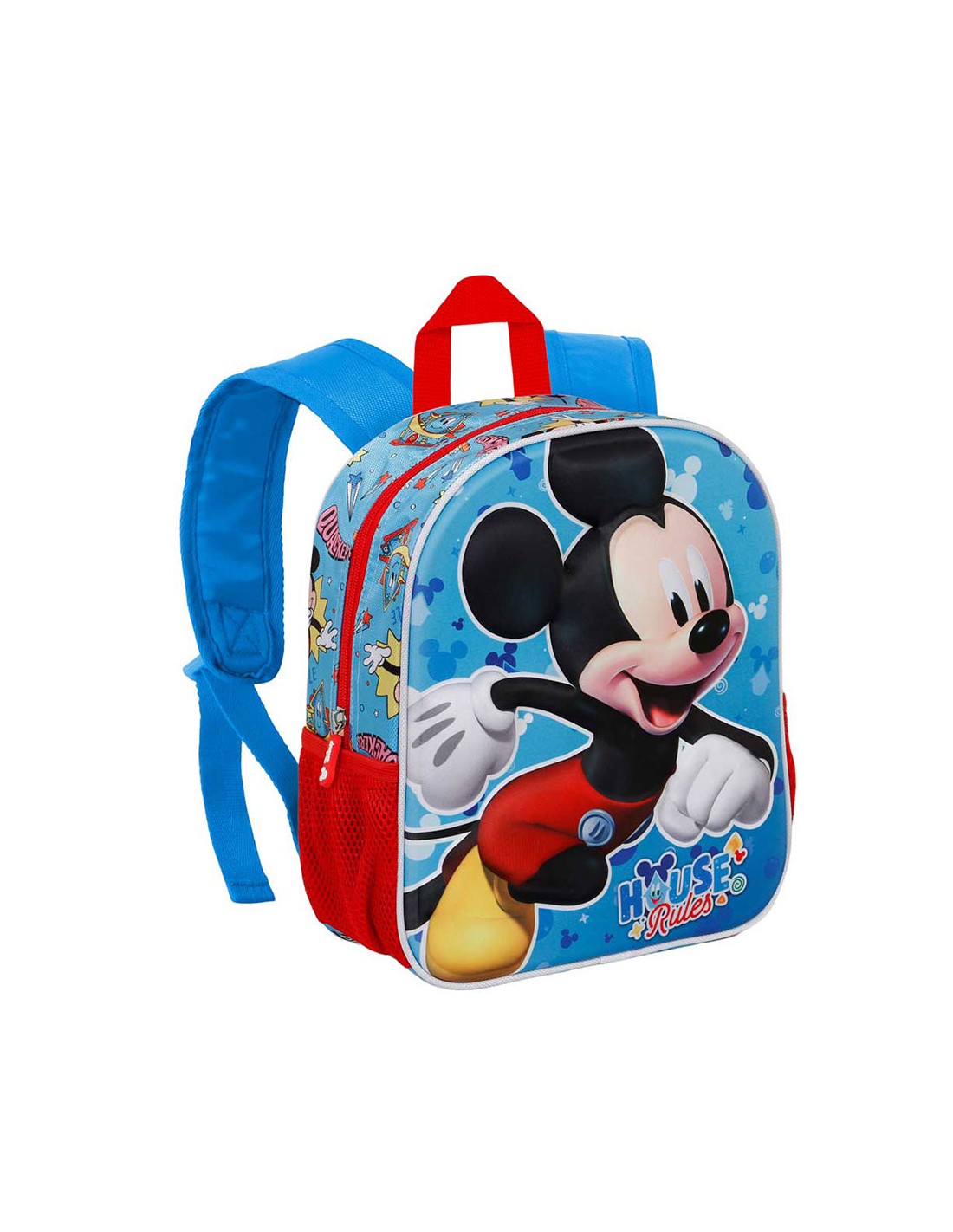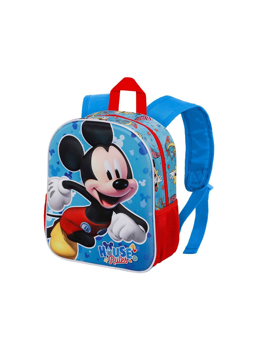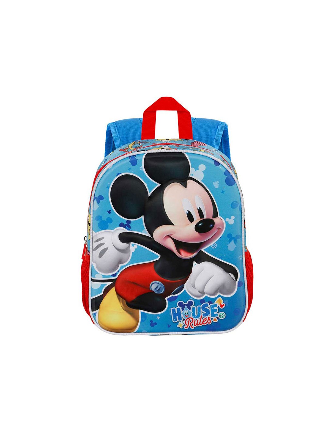 Mochila preescolar con relieve frontal 3d, mickey mouse, compartimento principal con cremallera y forro interior, dos bolsillos laterales de malla, medidas: 26x11x31cm. capacidad 8,5 l karactermania