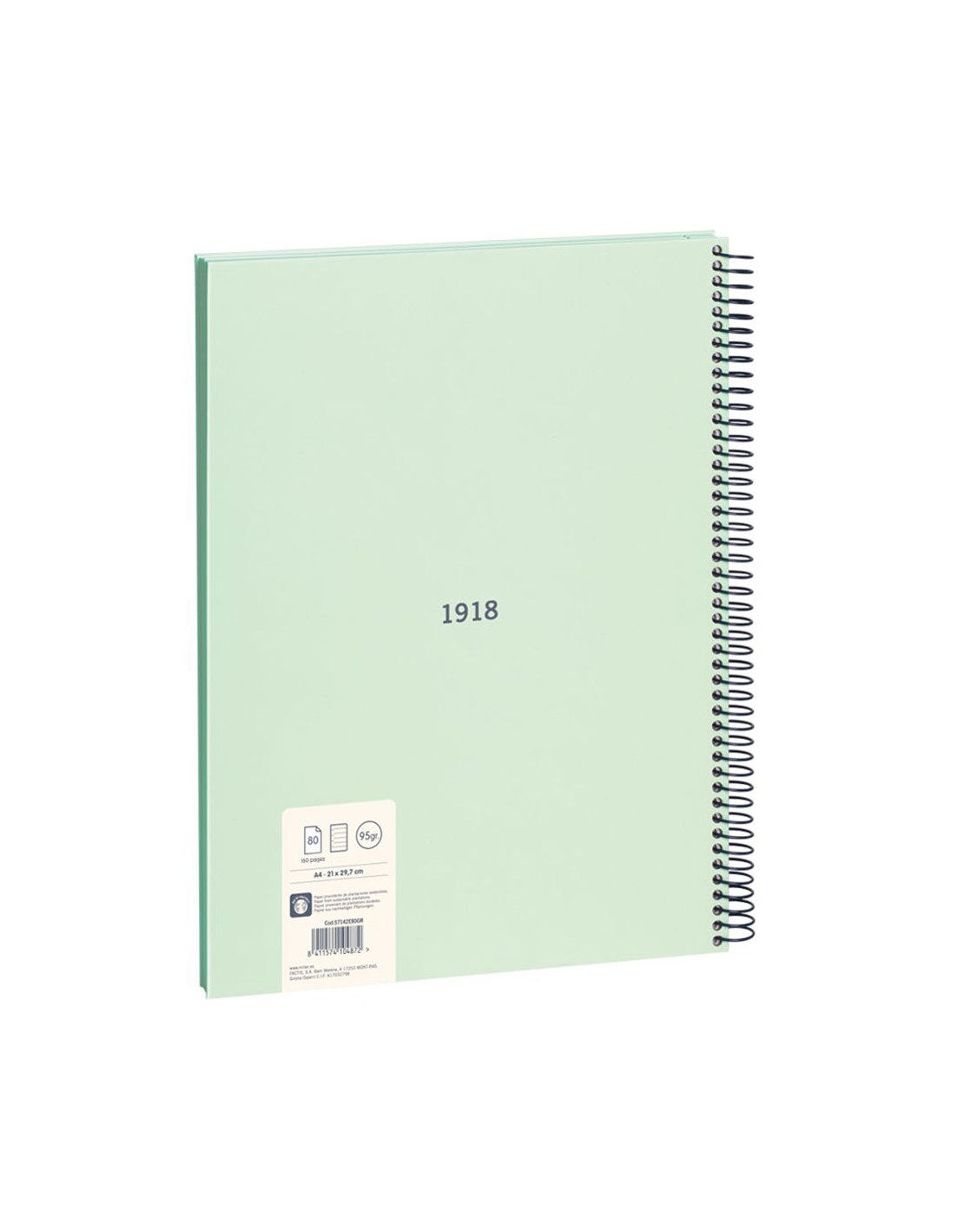 Cuaderno a4 con espiral metálica y tapa dura, color verde. 80 hojas de papel pautado a líneas (línea simple de 7mm). papel de 95 gr/m de alta calidad, microperforado y con 4 taladros. iniciador de corte para facilitar la separación de cada hoja. espiral flexible con cierre de seguridad. colección 430 since 1918, fabricadas en españa desde 1918.