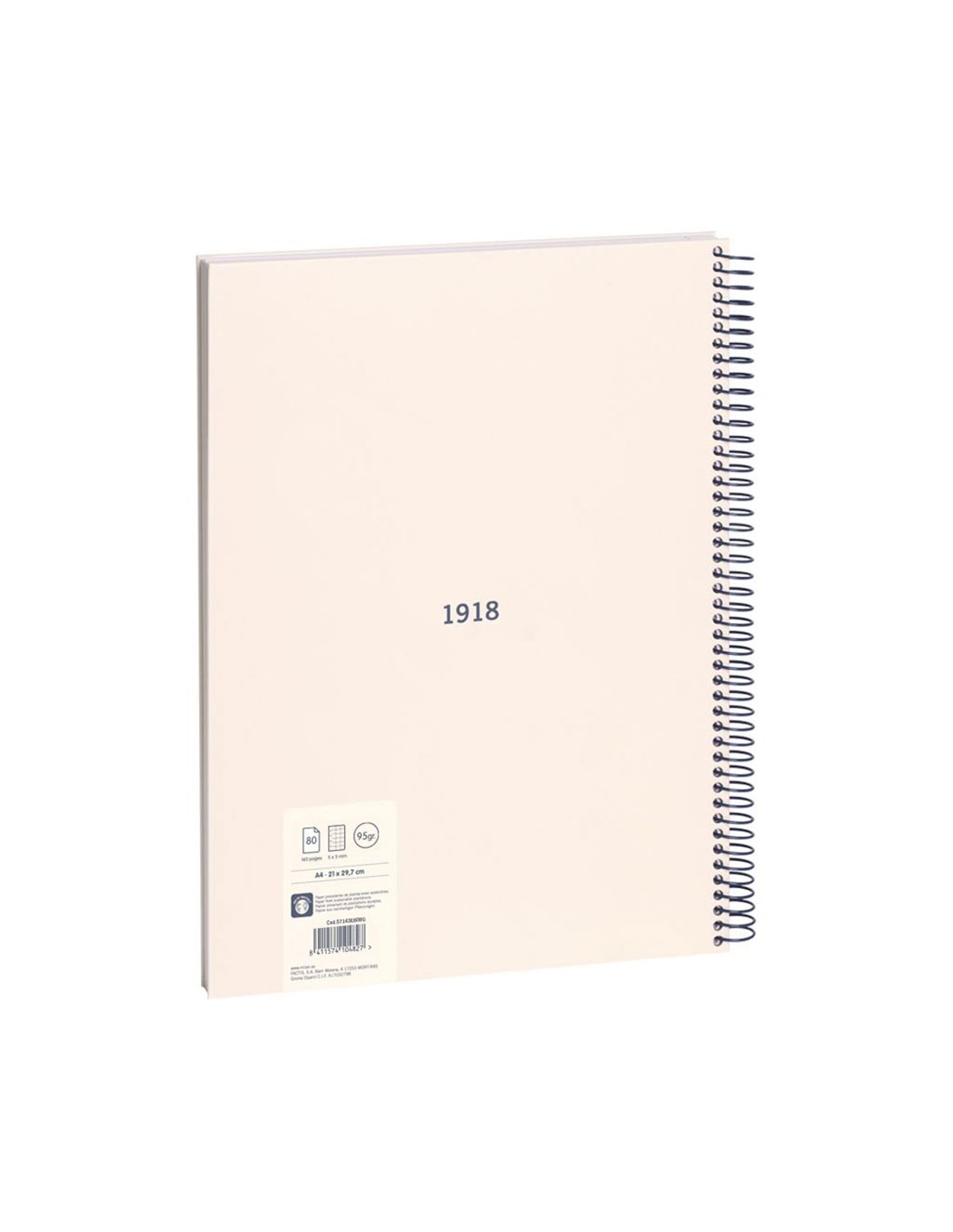 Cuaderno a4 con espiral metálica y tapa dura, color beige. 80 hojas de papel cuadriculado (5x5mm). papel de 95 gr/m de alta calidad, microperforado y con 4 taladros. iniciador de corte para facilitar la separación de cada hoja. espiral flexible con cierre de seguridad. colección 430 since 1918, fabricadas en españa desde 1918.