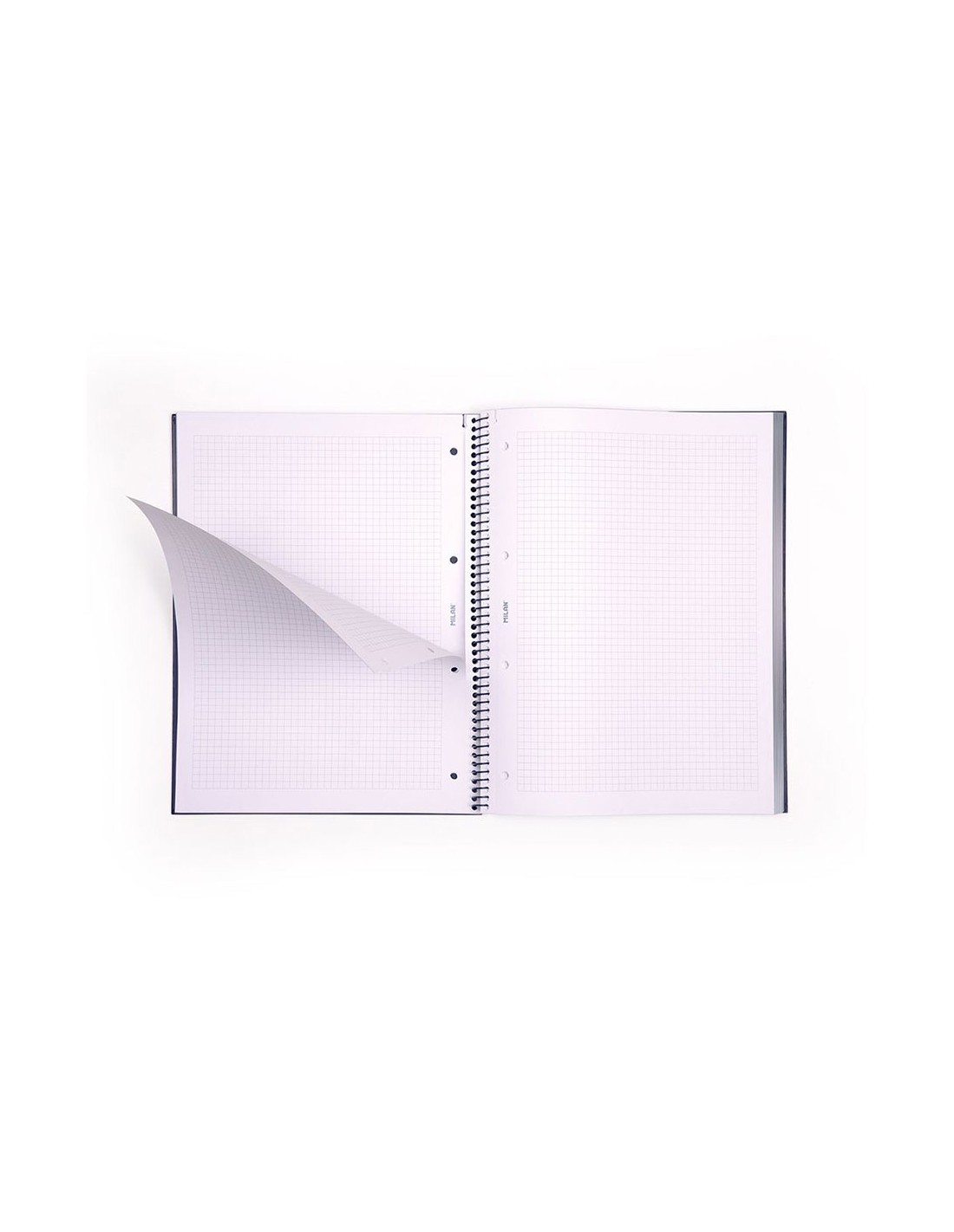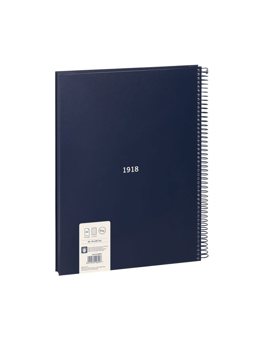 Cuaderno a4 con espiral metálica y tapa dura, color azul marino. 80 hojas de papel cuadriculado (5x5mm). papel de 95 gr/m de alta calidad, microperforado y con 4 taladros. iniciador de corte para facilitar la separación de cada hoja. espiral flexible con cierre de seguridad. colección 430 since 1918, fabricadas en españa desde 1918.
