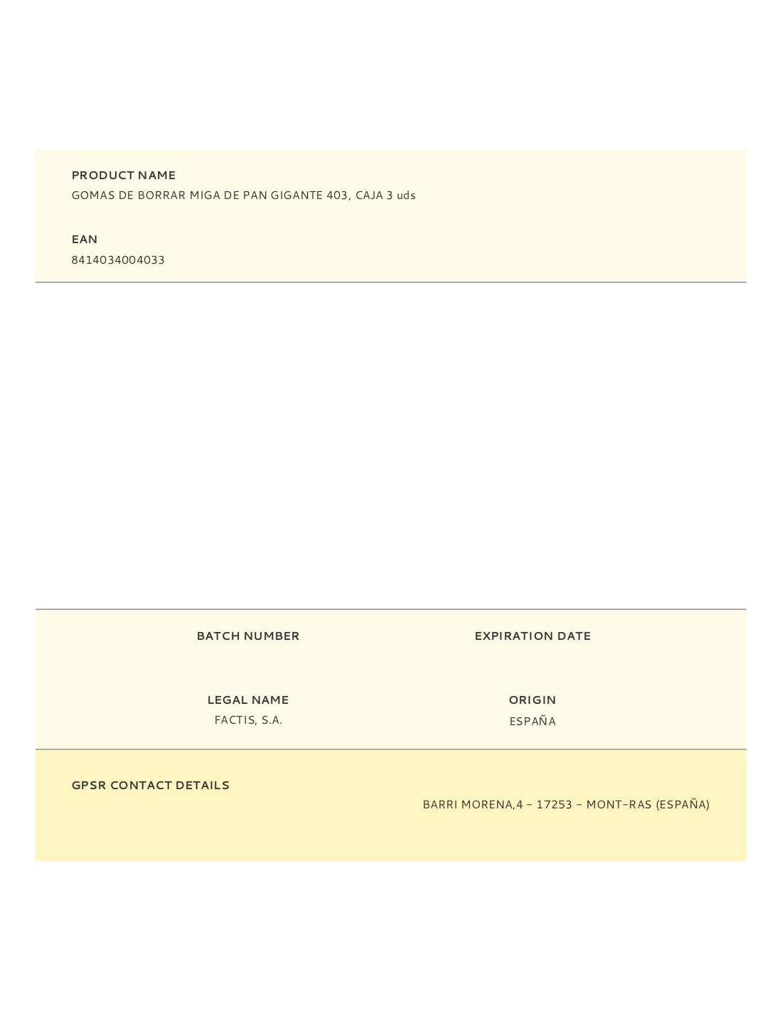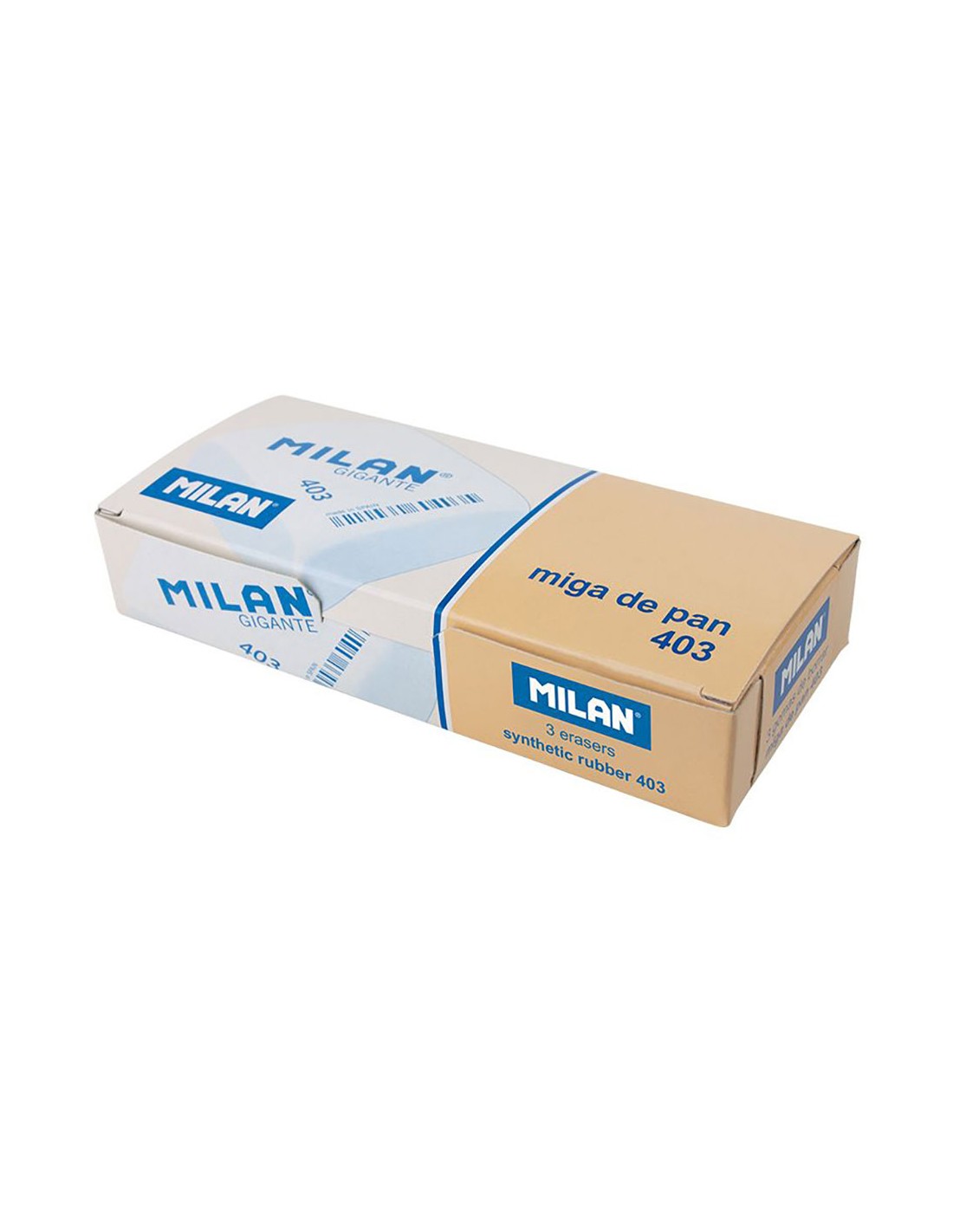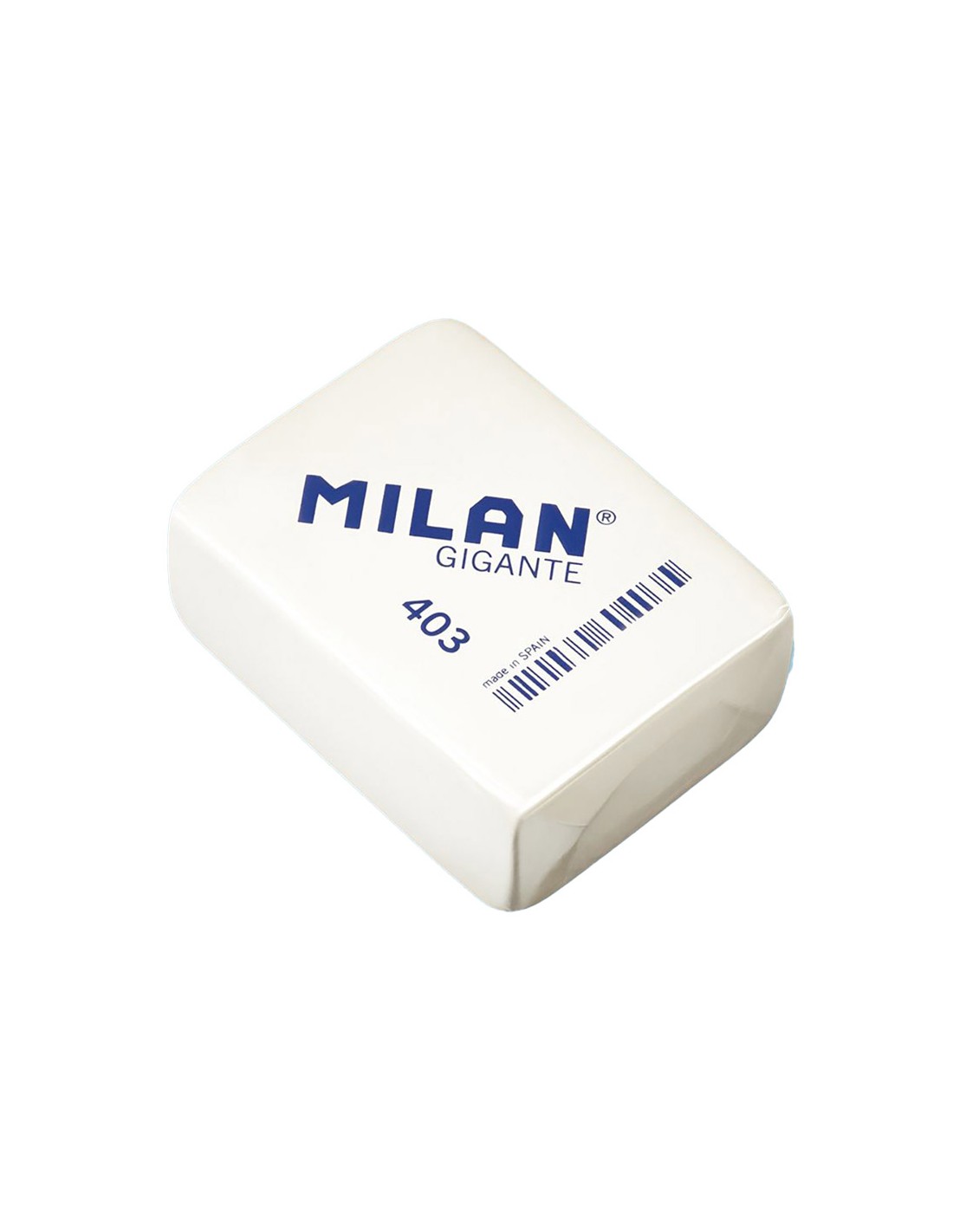 Goma gigante de caucho sintético tipo miga de pan. envuelta individualmente. es la goma milan de mayor tamaño. medidas 7x5,1x3cm. las gomas de borrar milan están fabricadas en españa desde 1918.