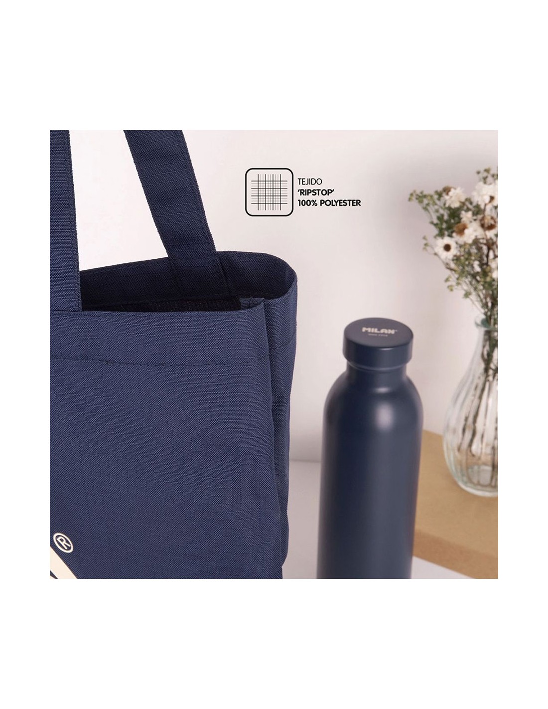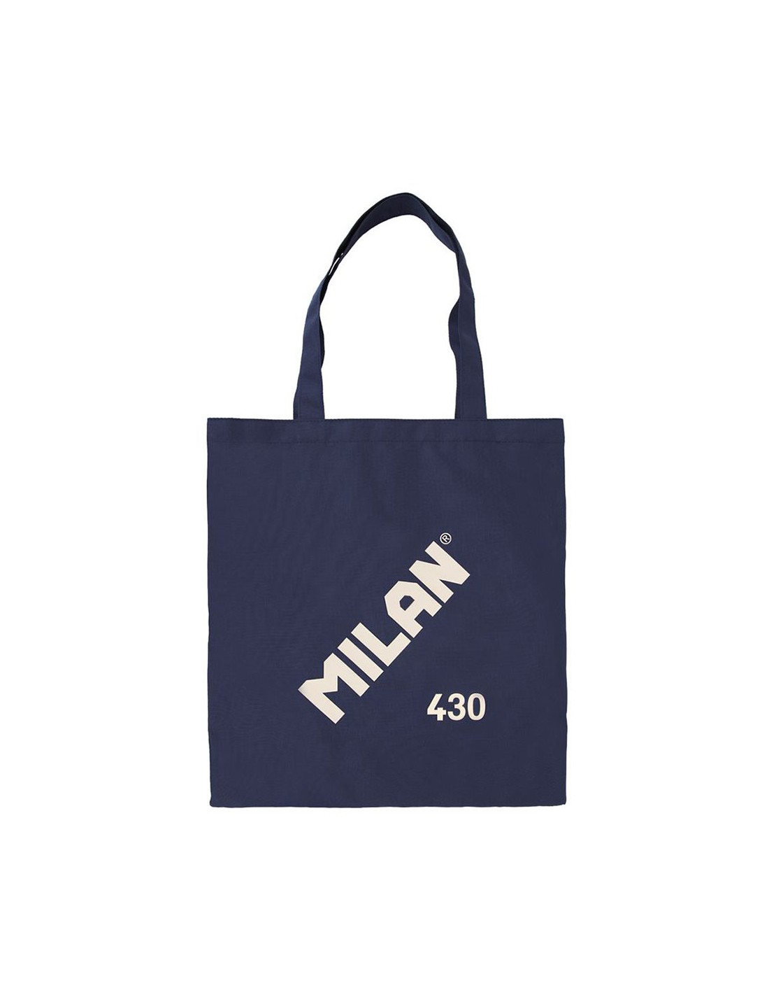Bolsa de tela tote bag color azul marino. colección 430 since 1918, colores y diseño originales de las gomas de borrar milan, fabricadas en españa desde 1918. ideal para la compra, bolso o para llevar lo necesario para el día a día. tejido 'ripstop': ligero y resistente a la rotura y rasgaduras. composición polyester. medidas 0,5x38x41cm. largo asa 27cm. capacidad 12,6 litros.
